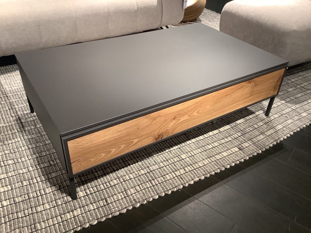 Couchtisch in Lack Schiefer grau matt, Front Risseiche Furnier