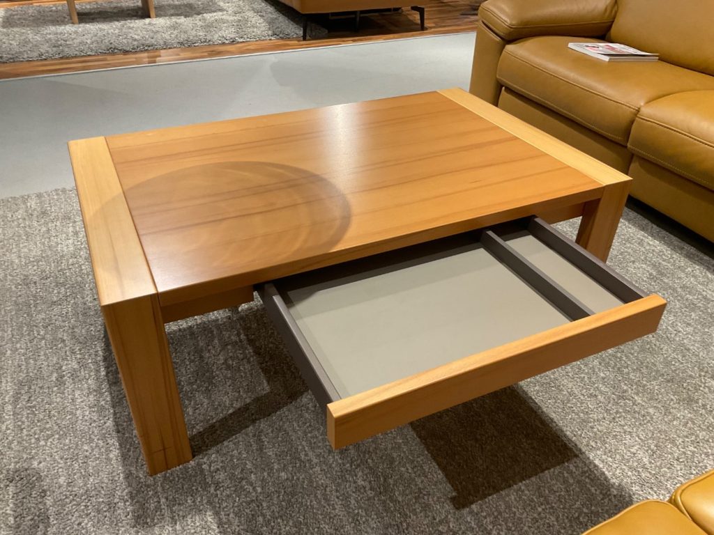 Bemerkung Der Couchtisch Kanto von MUSTERRING präsentiert sich als elegantes Möbelstück in einem edlen Kernbuche-Furnier, das jedem Raum eine natürliche und warme Ausstrahlung verleiht. Mit einer Breite von 118 cm, einer Höhe von 45 cm und einer Tiefe von 73 cm bietet diese Ausstellungware nicht nur ausreichend Stauraum, sondern ist auch ein Blickfang in Ihrer Einrichtung. Der integrierte Schubkasten sorgt für zusätzliche Aufbewahrungslösungen und hilft, Ordnung zu halten. Ein besonderes Highlight dieses Modells sind die zwei Füße mit Rollen, die dem Möbelstück nicht nur eine moderne Optik, sondern auch Funktionalität verleihen. Mit wenig Aufwand lässt es sich umplatzieren und bietet dadurch Flexibilität bei der Raumgestaltung. Die Kombination aus Funktionalität und stilvollem Design macht das Kanto-Möbelstück zu einer vielseitigen Ergänzung für verschiedene Wohnstile. Entdecken Sie das harmonische Zusammenspiel von Form und Funktion, das dieses Stück zu etwas Besonderem macht.