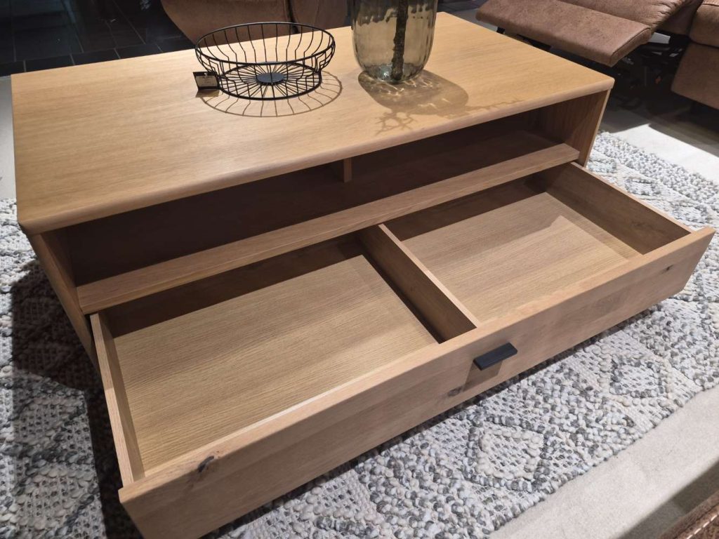 Couchtisch Balkeneiche Bianco geölt ,Schubkasten +2 Fächer,Rollen