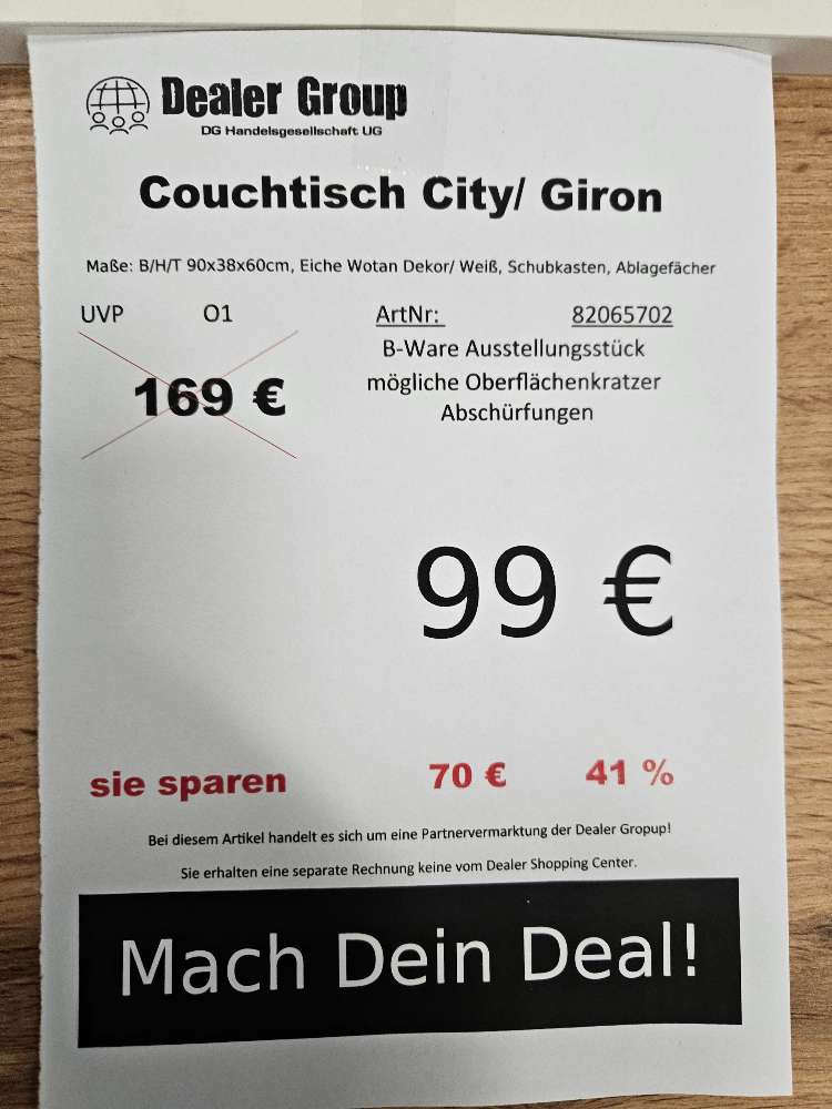 Couchtisch City Giron Eiche Wotan statt 169€
