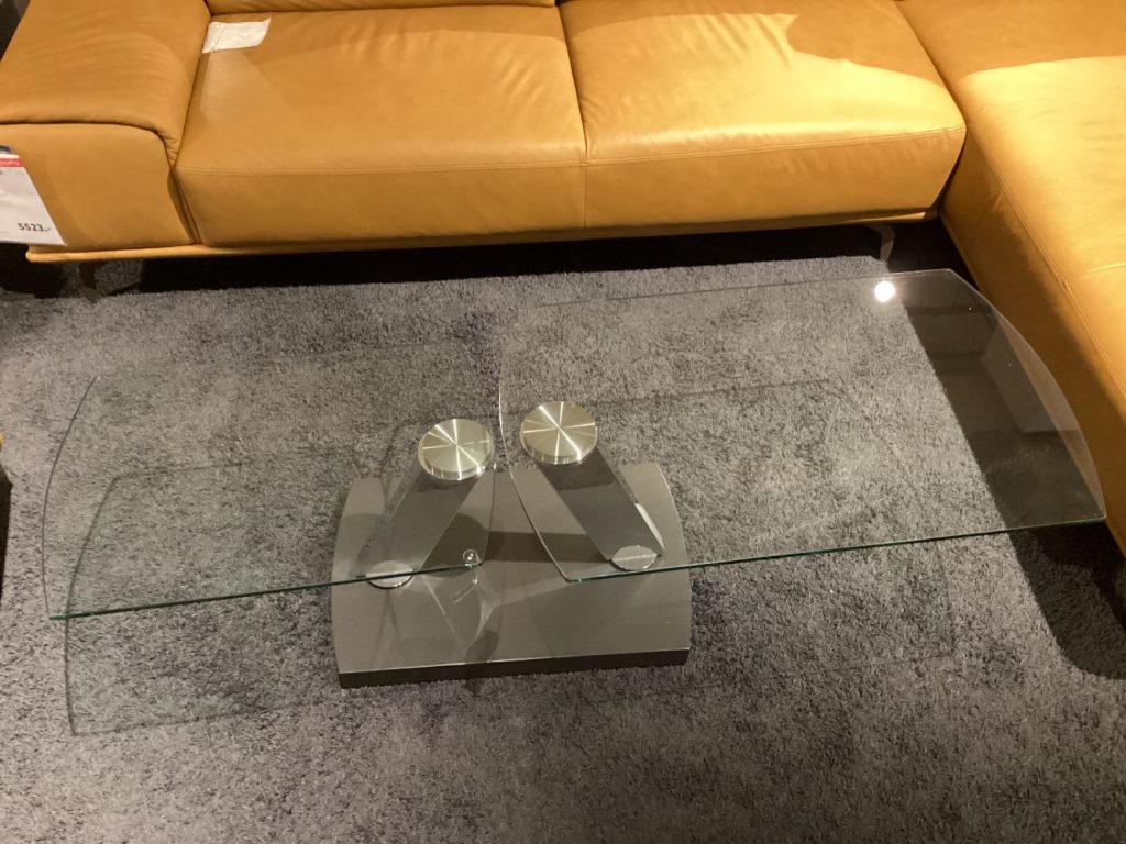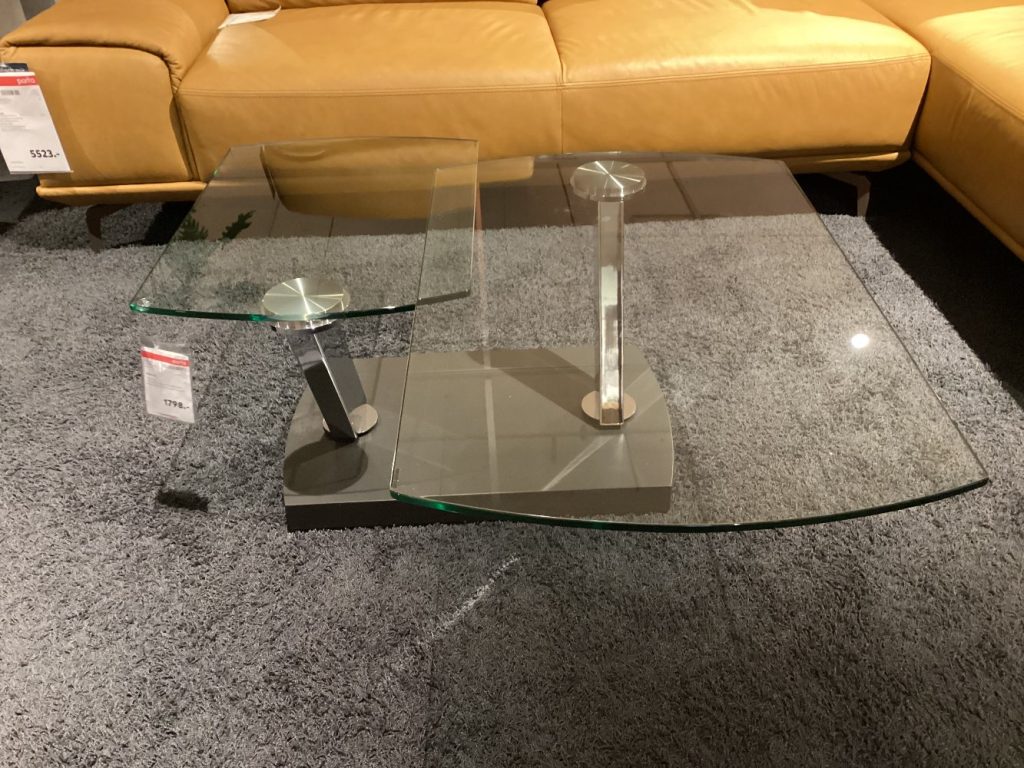Couchtisch „Fabia“, Orig. Musterring, 2 drehbare Glasplatten