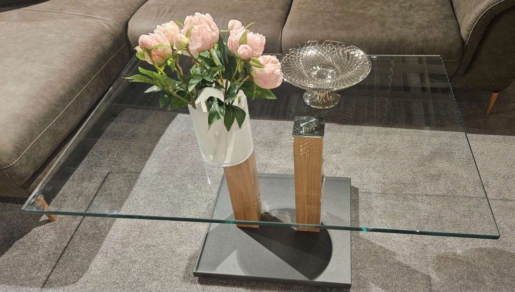 BemerkungDieses stilvolle Möbelstück besticht durch seine elegante Kombination aus edlem Klarglas und robustem Eichenholz, veredelt mit einem Öllack-Finish. Die klare Linienführung des Designs wird durch das rechteckige Klarglas unterstrichen, das sowohl in modernem als auch in klassischen Einrichtungsstilen hervorragend zur Geltung kommt. Der Kontrast zwischen dem transparenten Glas und dem anthrazitfarbenen Boden verleiht dem Möbelstück eine zeitlose Ästhetik.