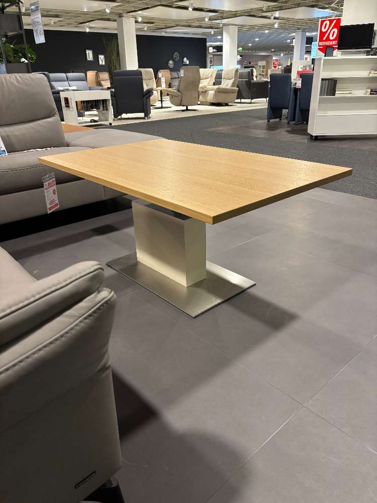 Bemerkung Das Modell "Venue" von Varianta präsentiert sich als elegantes und funktionales Möbelstück, das durch seine hochwertige Verarbeitung und stilvolle Gestaltung beeindruckt. Gefertigt mit einer Tischplatte aus Eiche sand furniert, strahlt das Möbelstück eine natürliche und warme Ästhetik aus. Die feine Maserung des Furniers verleiht ihm eine zeitlose Eleganz, während das Gestell in Lack crema eine moderne und ruhige Farbabstimmung bietet. Die robuste Fußplatte aus Edelstahl rundet das Design mit einer stabilen und zugleich raffinierten Basis ab. Dank der integrierten Hubmechanik bietet der Tisch eine bemerkenswerte Flexibilität: Mit einer Verstellbarkeit zwischen 0 und 15 cm passt er sich individuell an verschiedene Nutzungsszenarien an und bietet stets die optimale Höhe. Die Maße von ca. 120x41x75 cm machen ihn zu einem vielseitig einsetzbaren Möbelstück, das sich sowohl in Wohnräumen als auch in Büros harmonisch einfügt. Als Ausstellungsware besticht der "Venue" durch seine bereits zur Schau gestellten Qualitäten und lädt dazu ein, Teil eines stilvollen Ambiente zu werden.