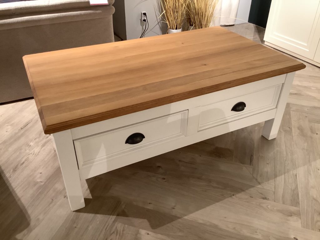 Couchtisch in weiß, Eiche Natur geölt Pappel, 2 Schubladen