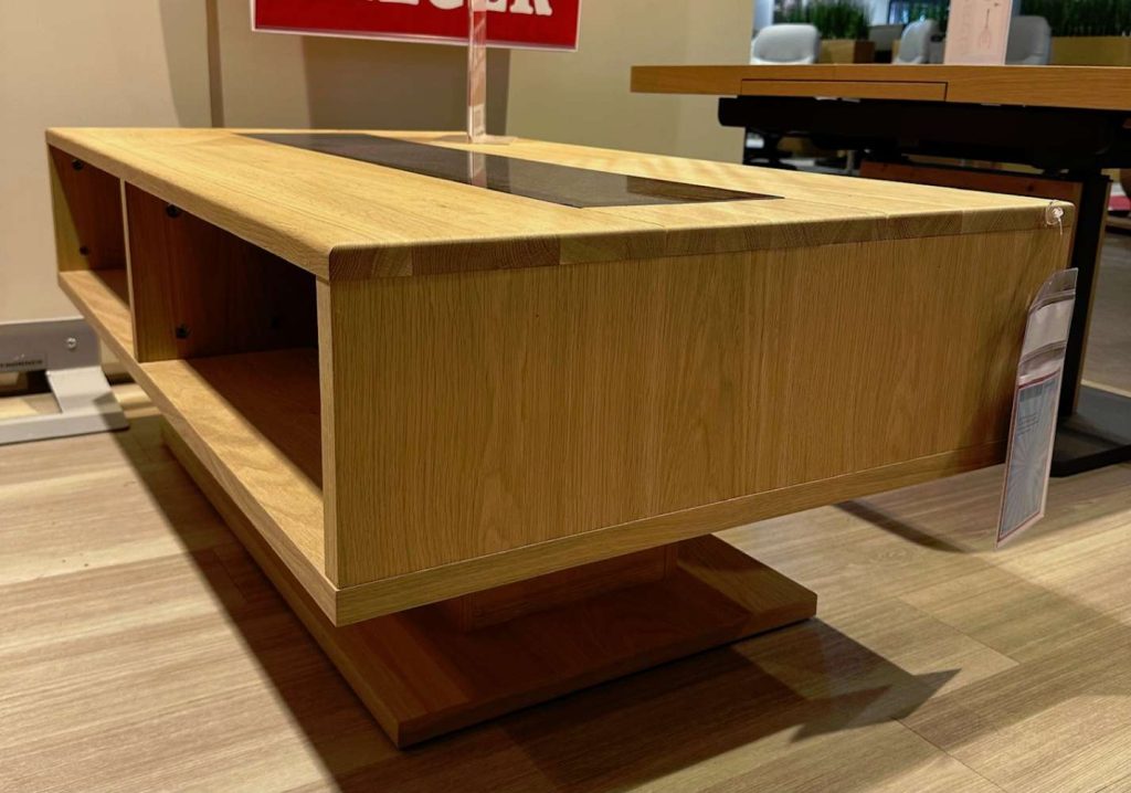 Die 4 offenen Fächer bieten vielfältige Möglichkeiten zur stilvollen Aufbewahrung und Präsentation Ihrer Lieblingsstücke oder praktischer Alltagsgegenstände. Zudem sind sie ideal, um die persönliche Note und Individualität Ihrer Einrichtung zur Geltung zu bringen. Ein besonderes Detail bilden die Aluminiumgriffe in schwarzer Farbe, die einen modernen Kontrast zur warmen Holzstruktur schaffen und zusätzliche stilistische Akzente setzen.