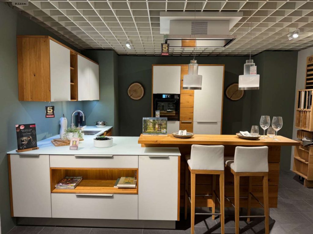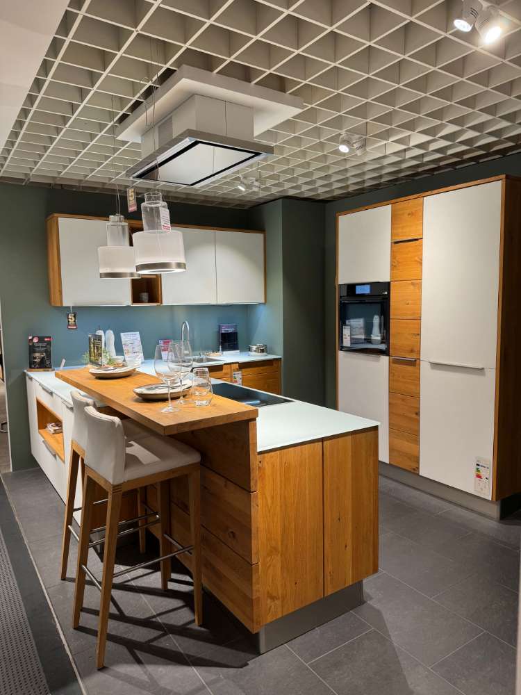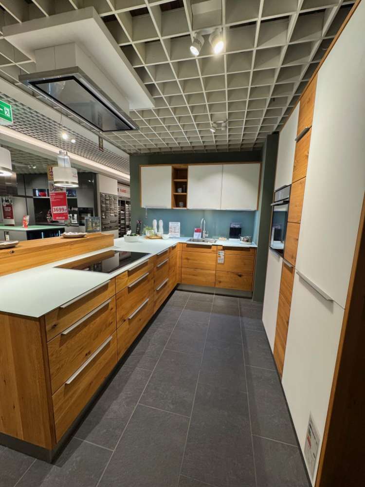 BemerkungDie U-Küche Calezzo Asteiche geölt von DECKER Massivholzmöbel verkörpert eine gelungene Kombination aus Stil und Eleganz. Diese exklusive Ausstellungsküche strahlt mit ihrem natürlichen Charme und warmem Farbton authentische Behaglichkeit aus. Die geölte Asteiche-Oberfläche hebt die charakteristischen Maserungen des Holzes hervor und verleiht der Küche eine unverwechselbare und zugleich elegante Note. Die harmonische U-Form bietet großzügigen Raum für ein komfortables Kocherlebnis sowie eine optimale Nutzung der Fläche.