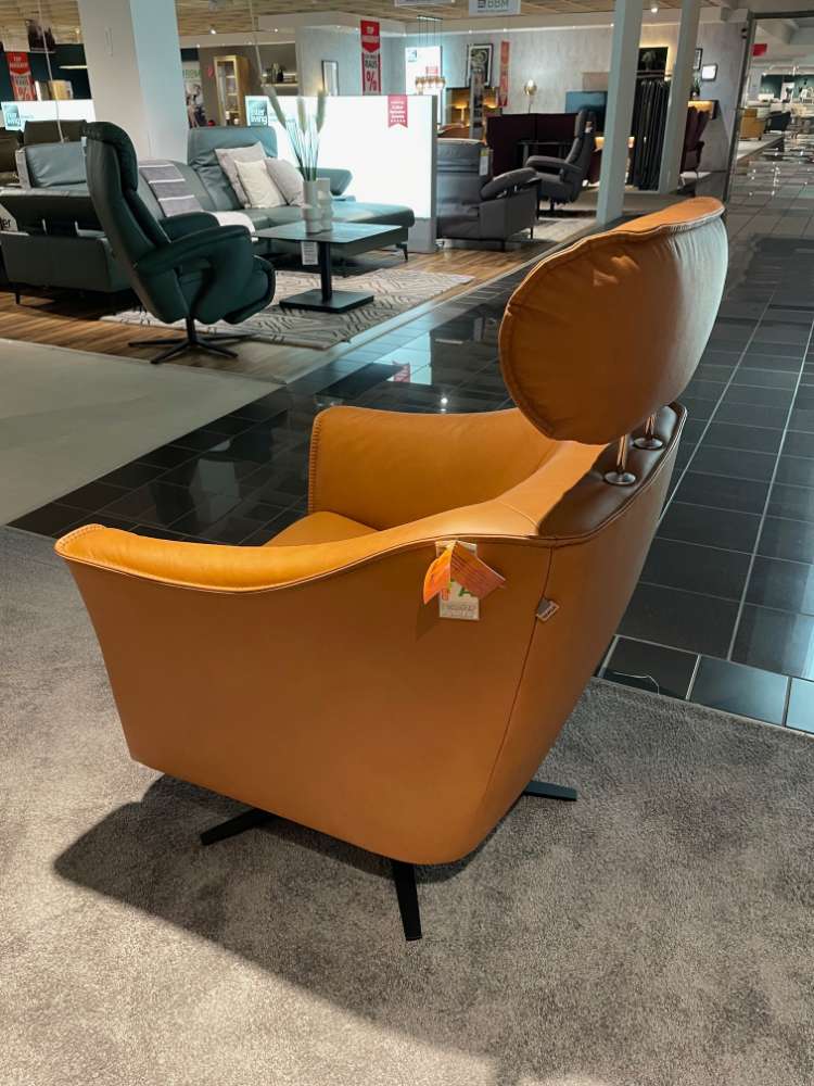 BemerkungDer elegante Relaxsessel von HUKLA vereint klassisches Design mit modernem Komfort und ist ein echtes Highlight für jedes Wohnzimmer. Gefertigt aus hochwertigem Echtleder, erscheint er in einem zeitlosen Braunton, der Wärme und Stil in Ihren Raum bringt. Der Sessel zeichnet sich durch eine verstellbare Kopfstütze aus, die für optimalen Komfort sorgt, und einen drehbaren Sternfuß aus, der in einem edlen Schwarz pulverbeschichtet ist. Dieser robuste Fuß verleiht dem Sessel eine stabile Basis und unterstreicht das moderne Design. Mit seinen kompakten Maßen von 78 cm Breite, 80 cm Höhe und 54 cm Tiefe fügt sich der Drehsessel problemlos in verschiedenste Raumkonzepte ein. Dieses Möbelstück ist mehr als nur ein Sitzplatz – es lädt zum Entspannen ein und ist gleichzeitig ein stilvolles Statement.