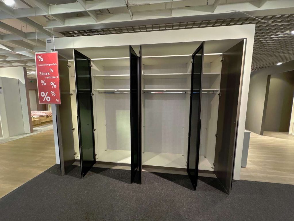BemerkungDer Drehtürenschrank Airline von Loddenkemper vereint modernes Design mit funktionaler Eleganz und eignet sich perfekt für all jene, die Wert auf Ästhetik und Qualität legen. Als Ausstellungsware präsentiert er sich in einem exzellenten Zustand und bringt stilvolle Akzente in Ihren Wohnbereich. Mit beeindruckenden Maßen von etwa 303,2 cm Breite, 223 cm Höhe und 57,2 cm Tiefe bietet der Schrank geräumigen Stauraum, um Ihre Kleidung und Accessoires ordentlich unterzubringen.