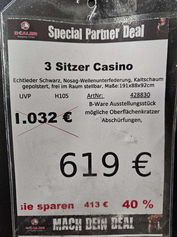 Echtleder Sofa Couch 3 Sitzer Casino Schwarz statt 1032€