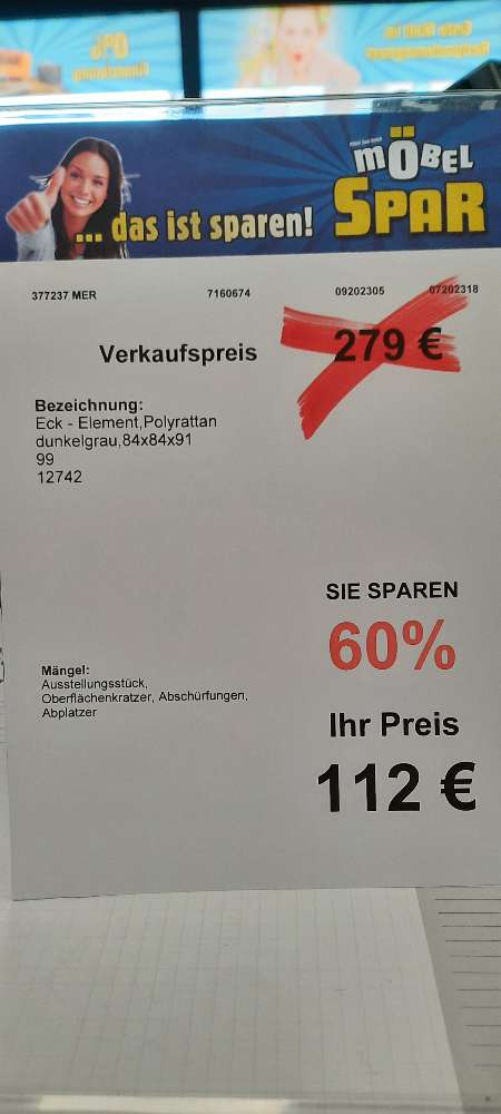 BemerkungHierbei handelt es sich um ein Angebot von Möbel Spar Standort des Artikels ist Merseburg