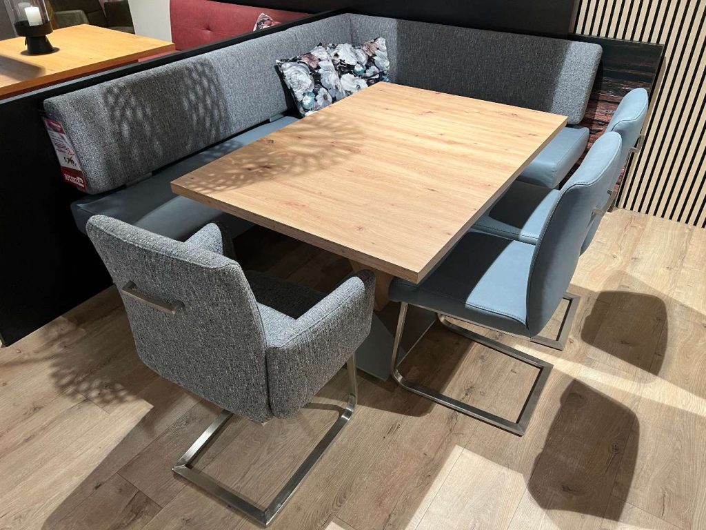 Die geraden Kufen, gefertigt in hochwertiger Edelstahloptik, sorgen nicht nur für eine stabile und langlebige Konstruktion, sondern unterstreichen auch die moderne Ästhetik des Möbels. Dieses Stück verleiht jedem Raum eine einladende und zugleich anspruchsvolle Atmosphäre und wird sicherlich zum Blickfang jeder Inneneinrichtung. Obwohl es sich um ein Ausstellungsstück handelt, strahlt es durchdachte Handwerkskunst und Qualität aus, die Sie erleben müssen. Genießen Sie die Mischung aus Design und Komfort, die perfekt in jedes stilvolle Zuhause passt.