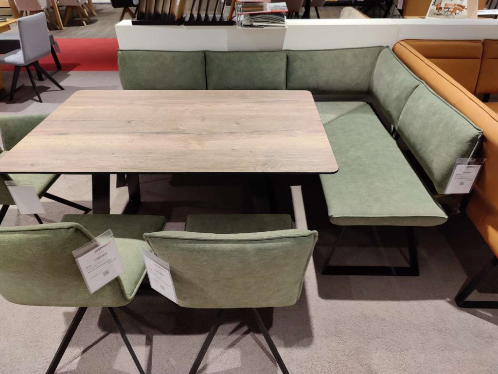 Als Ausstellungsware präsentiert sich diese Eckbankgruppe als wahres Schmuckstück jeder Esszimmergestaltung und ist ideal für all jene, die auf der Suche nach einer funktionalen und gleichzeitig stilvollen Sitzlösung sind.