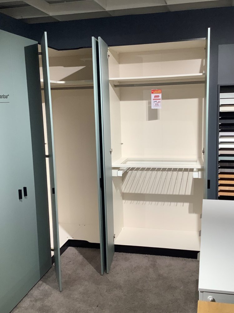 Eckdrehtürenschrank ca. 203/209x220x58,5cm Korpus Novaschwarz, Front Salbeigrün inkl. Innenausstattung