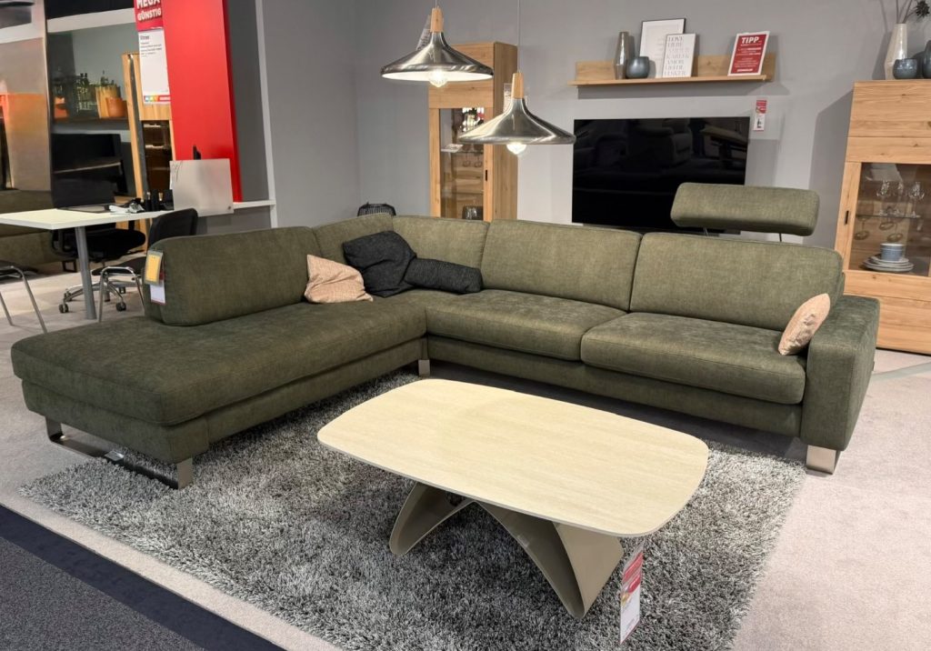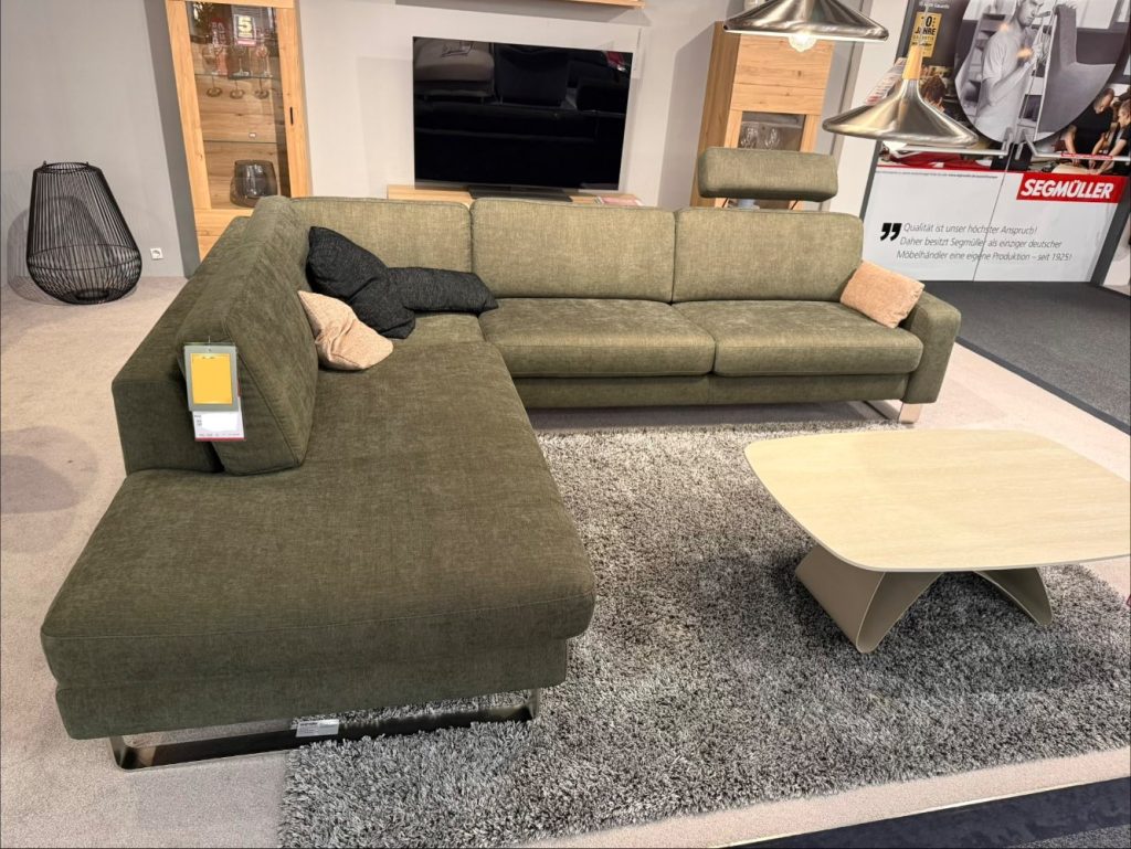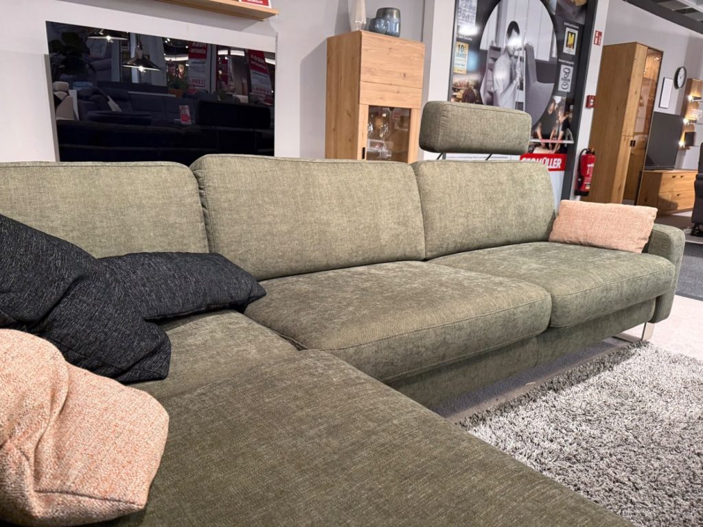 BemerkungDas Ecksofa Lipari in der ansprechenden Farbe Incanto Olive von den SEGMÜLLER WERKSTÄTTEN bringt nicht nur Eleganz, sondern auch Funktionalität in Ihr Wohnzimmer. Als Austellungsware besticht dieses Modell durch seine sorgfältige Verarbeitung und das durchdachte Design. Mit großzügigen Maßen von etwa 247 x 296 cm lädt dieses Sofa zum Verweilen und Entspannen ein und bietet ausreichend Platz für Familie und Freunde.