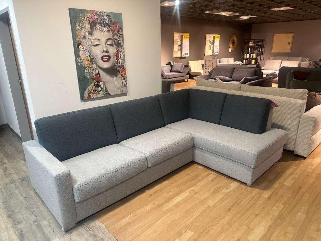Bemerkung Das Ecksofa MOLTO von RESTYL ist ein stilvolles Möbelstück, das in Ihrem Wohnraum einen bleibenden Eindruck hinterlässt. Als Ausstellungsstück verbindet es Eleganz und Funktionalität und ist perfekt geeignet, um sowohl Komfort als auch modernes Design in Ihre Einrichtung zu bringen. Die großzügige Eckform des Sofas bietet ausreichend Platz, um sich zu entfalten und entspannte Stunden mit Familie und Freunden zu genießen. Die hochwertigen Materialien und die sorgfältige Verarbeitung zeugen von der hohen Qualität, für die der renommierte Hersteller RESTYL bekannt ist. Die weichen und gleichzeitig strapazierfähigen Bezüge machen das Sofa zu einer Oase der Gemütlichkeit, die zum Verweilen einlädt. Die Kombination aus zeitgemäßem Design und durchdachter Funktionalität macht das Ecksofa MOLTO zu einem Highlight, das jedem Wohnzimmer das gewisse Extra verleiht. Egal, ob beim Entspannen nach einem langen Tag oder bei geselligem Zusammensein – dieses Möbelstück erfüllt höchste Ansprüche an Komfort und Stil.
