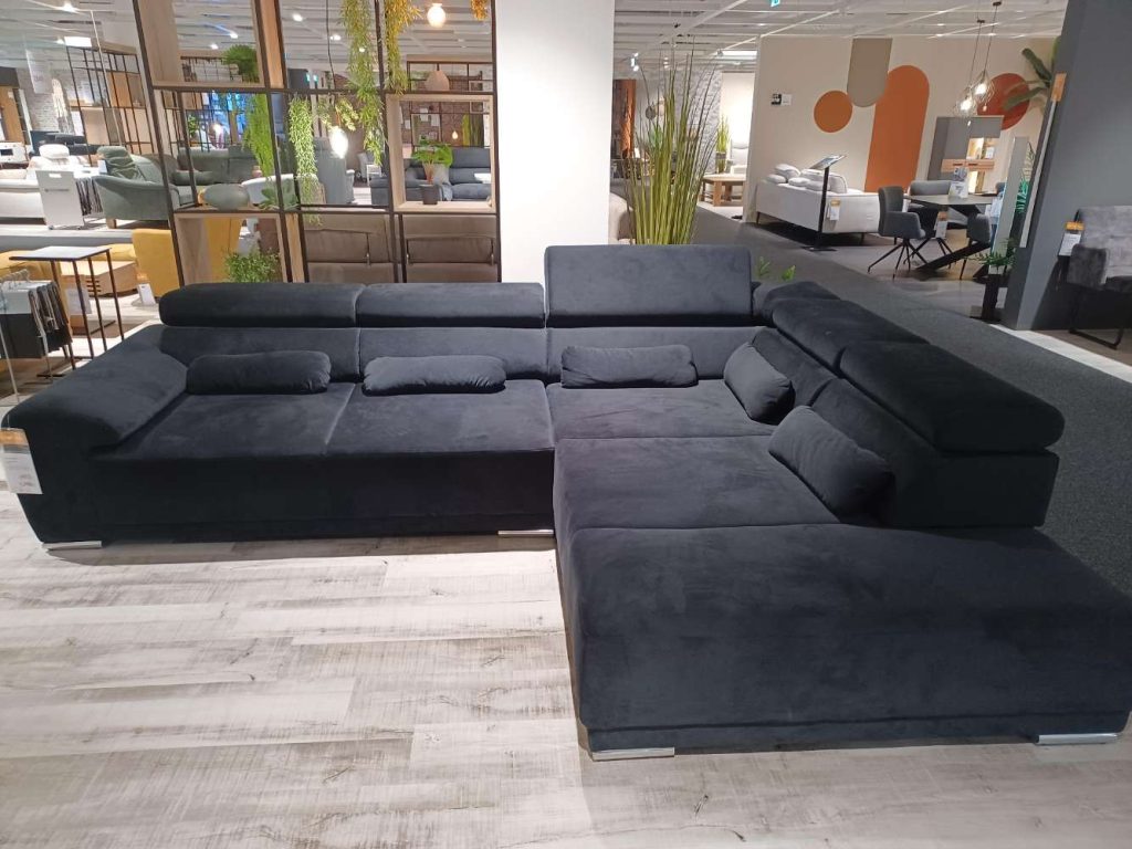 AusführungEckgarnitur Padua ca. 320x76x229cm, Schwarz inkl. Nierenkissen & elektrischer Funktion