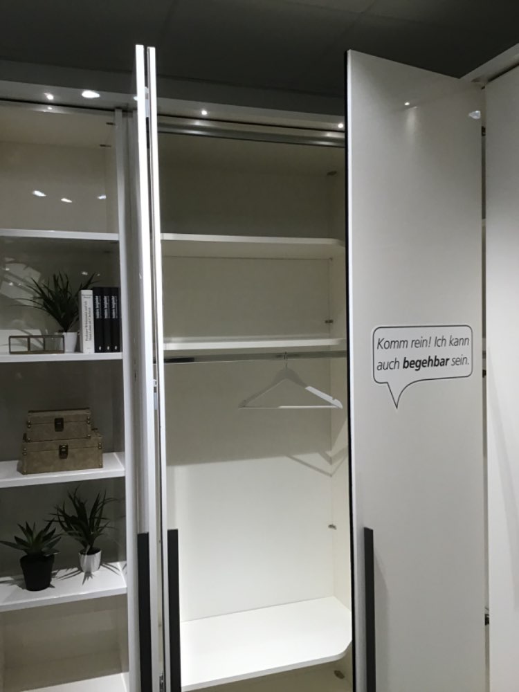 BemerkungEntdecken Sie unseren hochwertigen Drehtürenschrank, der als Ausstellungsware erhältlich ist und durch sein zeitloses Design besticht. Dieses elegante Möbelstück bietet eine ideale Lösung für Ihre Aufbewahrungsbedürfnisse und schafft gleichzeitig ein stilvolles Ambiente in Ihrem Schlafzimmer. Der Schrank wurde mit präziser Handwerkskunst gefertigt und bietet viel Stauraum hinter seinen funktionalen Drehtüren. Die klaren Linien und die hochwertige Verarbeitung machen ihn zu einem vielseitigen Begleiter für verschiedenste Einrichtungsstile. Dank seiner durchdachten Innenaufteilung haben Sie ausreichend Platz, um Ihre Kleidung und Accessoires ordentlich zu verstauen. Ob klassisch oder modern eingerichtet, dieser Drehtürenschrank wird zum Blickfang in jedem Raum und überzeugt durch seine Langlebigkeit und praktische Handhabung. Nutzen Sie die Gelegenheit, diese Ausstellungsware zu einem attraktiven Preis zu erwerben und bereichern Sie Ihr Zuhause mit diesem stilvollen und funktionalen Möbelstück.