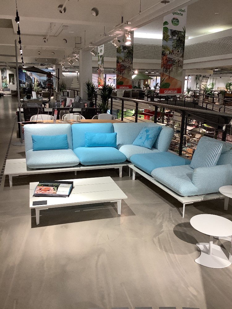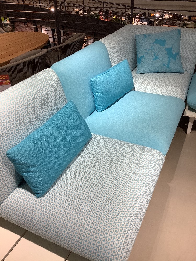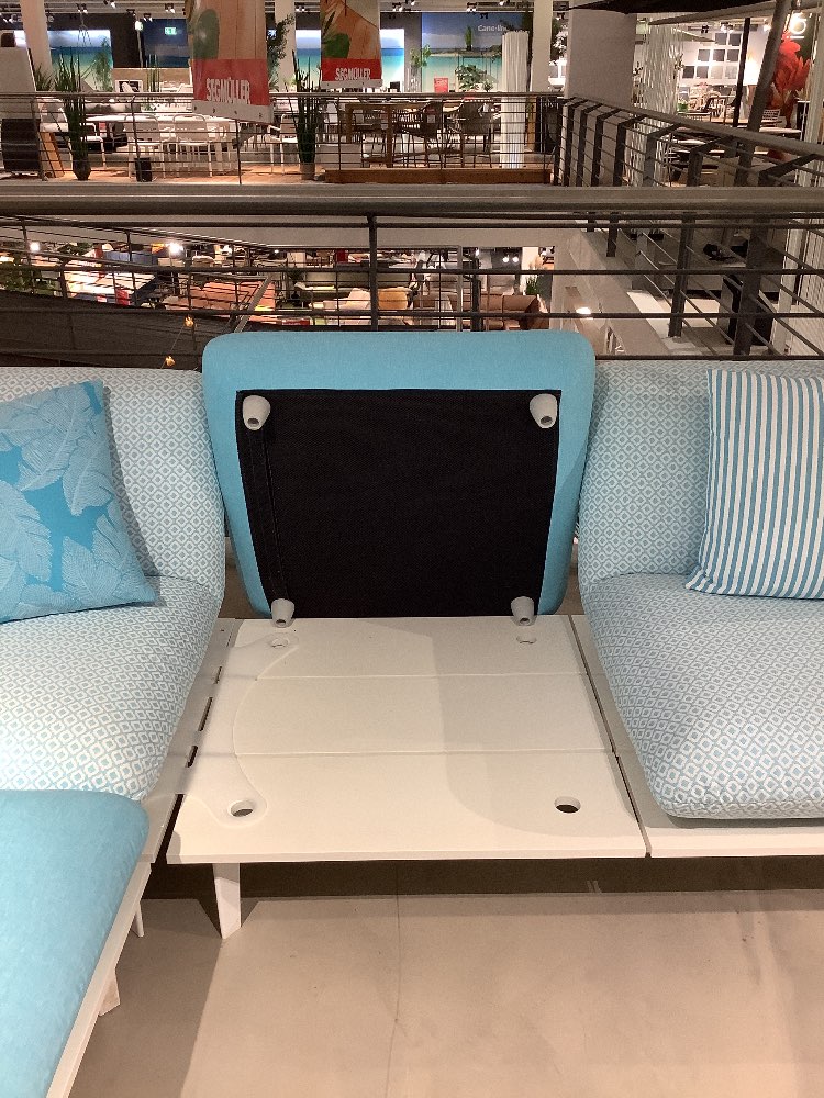 Sitzelemente können flexibel gestaltet werden, inkl. Dekokissen und Couchtisch