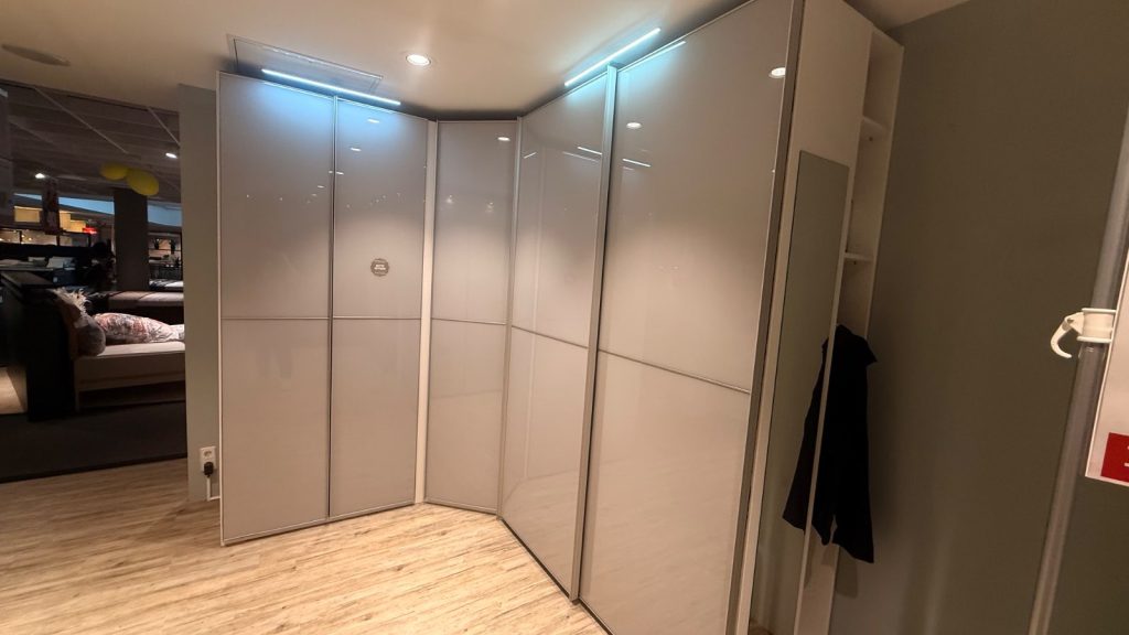 - Schwebetürenschrank 2-trg. mit integriertem Regalelement auf der rechten Seite