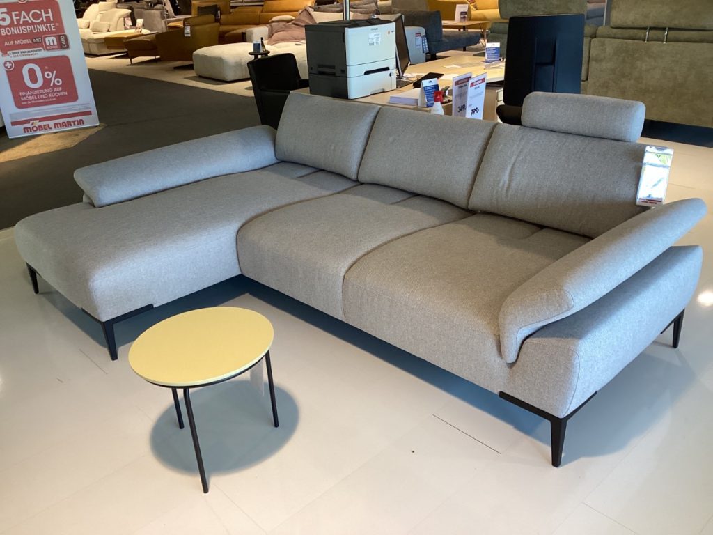 BemerkungDas Ecksofa "Wave" in der eleganten Farbe Angora verwandelt Ihr Wohnzimmer in eine Oase des Komforts und des Stils. Es bietet nicht nur eine großzügige Sitzfläche von 165/186x280 cm, sondern auch anpassbare Elemente, die genau auf Ihre Bedürfnisse eingehen. Die verstellbaren Sitztiefen und Armteile sorgen für ein individuelles Sitzerlebnis, das höchsten Ansprüchen gerecht wird. Mit dem luxuriösen Stoffbezug, der in seiner dezenten, aber stilvollen Farbgebung besticht, fügt sich das Sofa harmonisch in jedes moderne Interieur ein. Die stabilen, schwarzen Metallfüße verleihen dem Sofa eine schlanke und moderne Eleganz, während die praktische Kopfstütze zusätzlichen Komfort für entspannte Stunden bietet. Als Ausstellungsstück bietet dieses Sofa nicht nur Qualität und Design, sondern auch das gewisse Etwas für Ihr Zuhause. Perfekt für gemütliche Abende und stilbewusste Einrichtungsliebhaber.