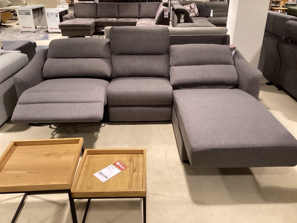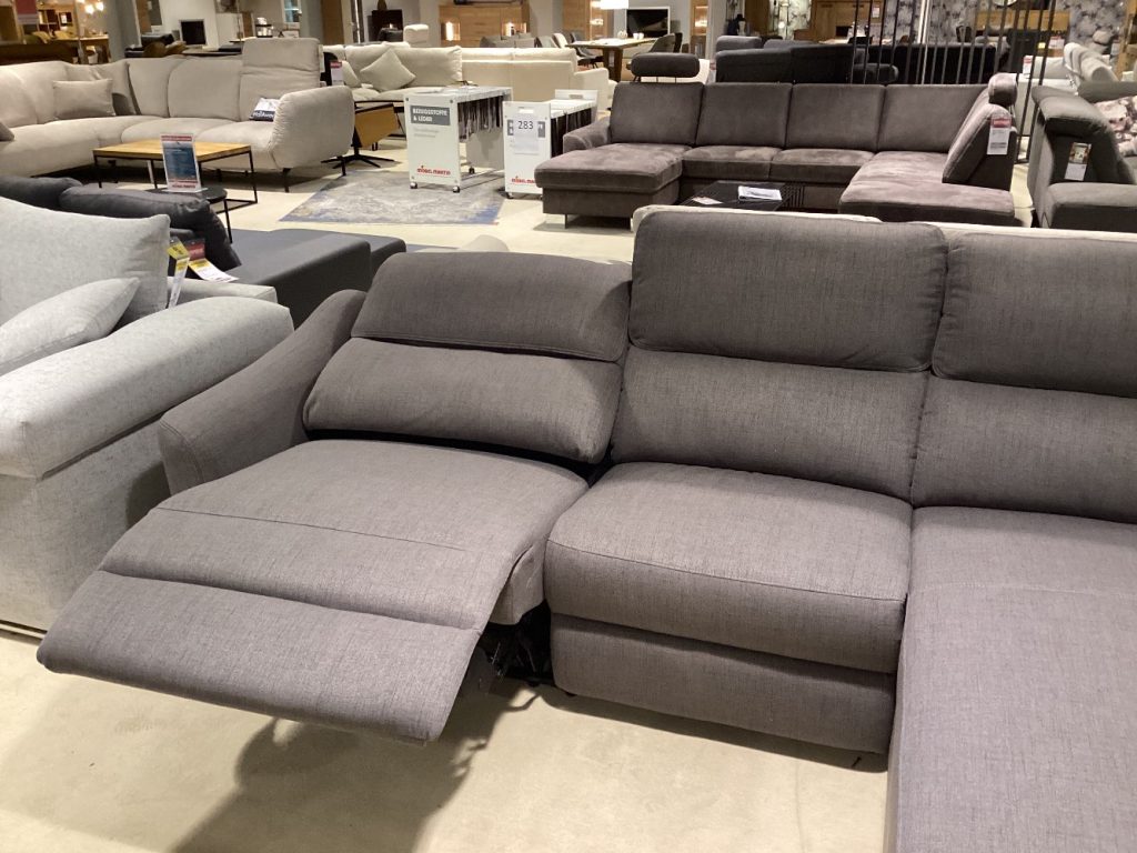 BemerkungDas Ecksofa Peppino vereint modernen Komfort mit stilvollem Design und bietet einen luxuriösen Mittelpunkt für jedes Wohnzimmer. Gefertigt aus hochwertigem Stoff, besticht es durch seine sanfte Haptik und sorgt für ein einladendes Ambiente. Mit seinen großzügigen Maßen von ca. 284x171 cm bietet Peppino reichlich Platz für gesellige Abende oder entspannte Stunden allein. Ein besonderes Highlight ist die elektrische Relaxfunktion, die sowohl links als auch rechts integriert ist und es ermöglicht, per Knopfdruck in eine bequeme Liegeposition zu gleiten. Als Ausstellungsware präsentiert sich Peppino in einem nahezu neuwertigen Zustand, bereit, Ihr Zuhause mit einem Hauch von Luxus zu bereichern. Dieses Ecksofa ist nicht nur ein optischer Genuss, sondern auch ein Garant für höchsten Sitzkomfort und Erholung.