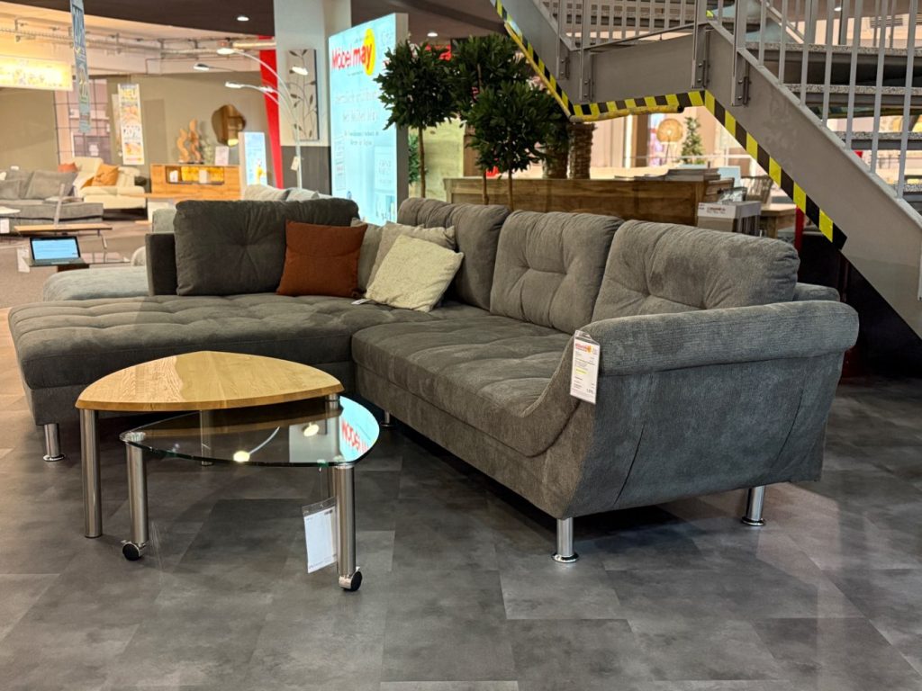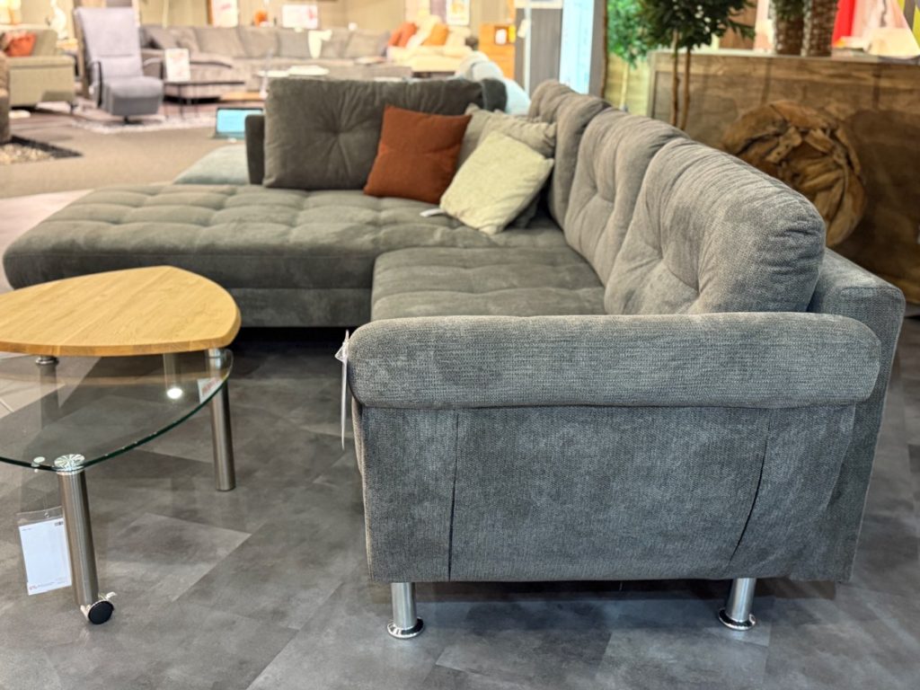 BemerkungDas Ecksofa Medford/Melina von Exxpo strahlt in einem eleganten Dunkelgrau und fügt sich harmonisch in jede moderne Wohnlandschaft ein. Als Ausstellungsstück überzeugt es durch seine großzügigen Maße von ca. 326 x 93 x 224 cm, die jede Menge Platz für gemütliche Stunden bieten. Der verwendete Stoff verspricht nicht nur Komfort, sondern unterstreicht auch die hochwertige Verarbeitung dieses Möbelstücks. Die silberfarbenen Kunststofffüße verleihen dem Sofa eine moderne, stilvolle Note, die jedes Wohnzimmer optisch aufwertet.