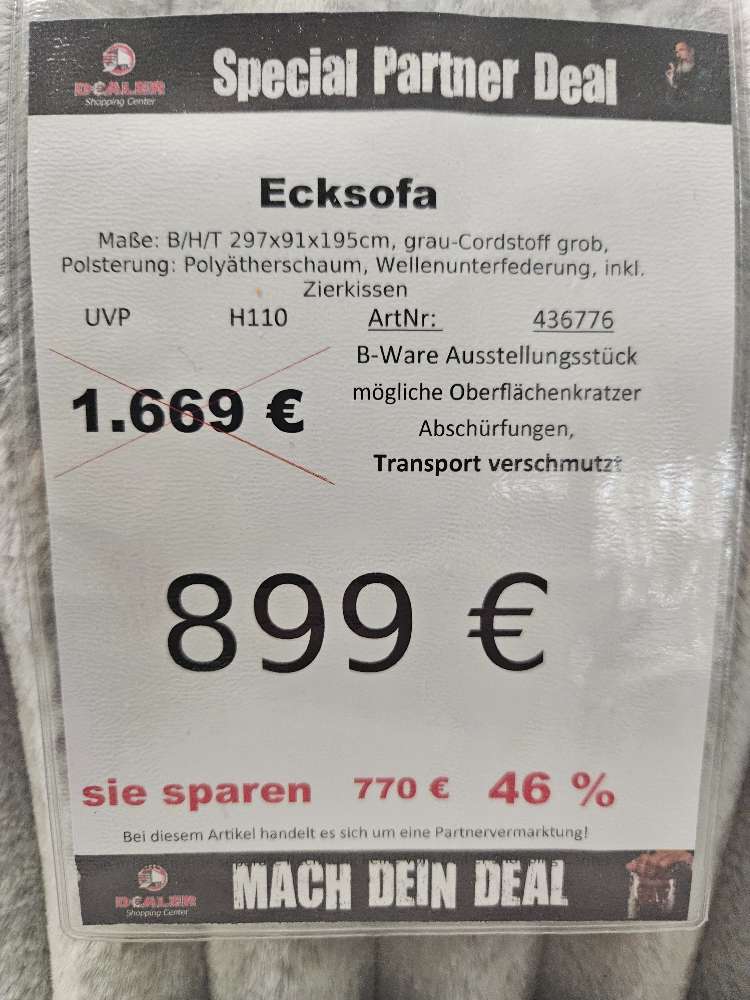 Ecksofa Breitcord Grau statt 1669€