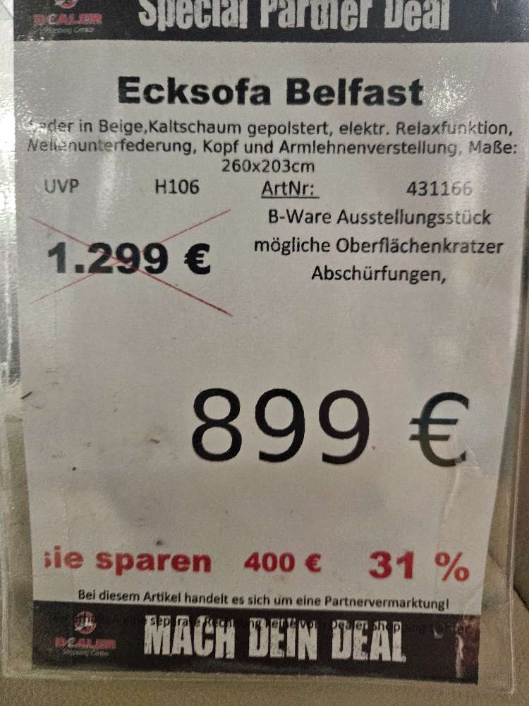 Ecksofa Couch Belfast Leder Beige Relaxfunktion statt 1299€