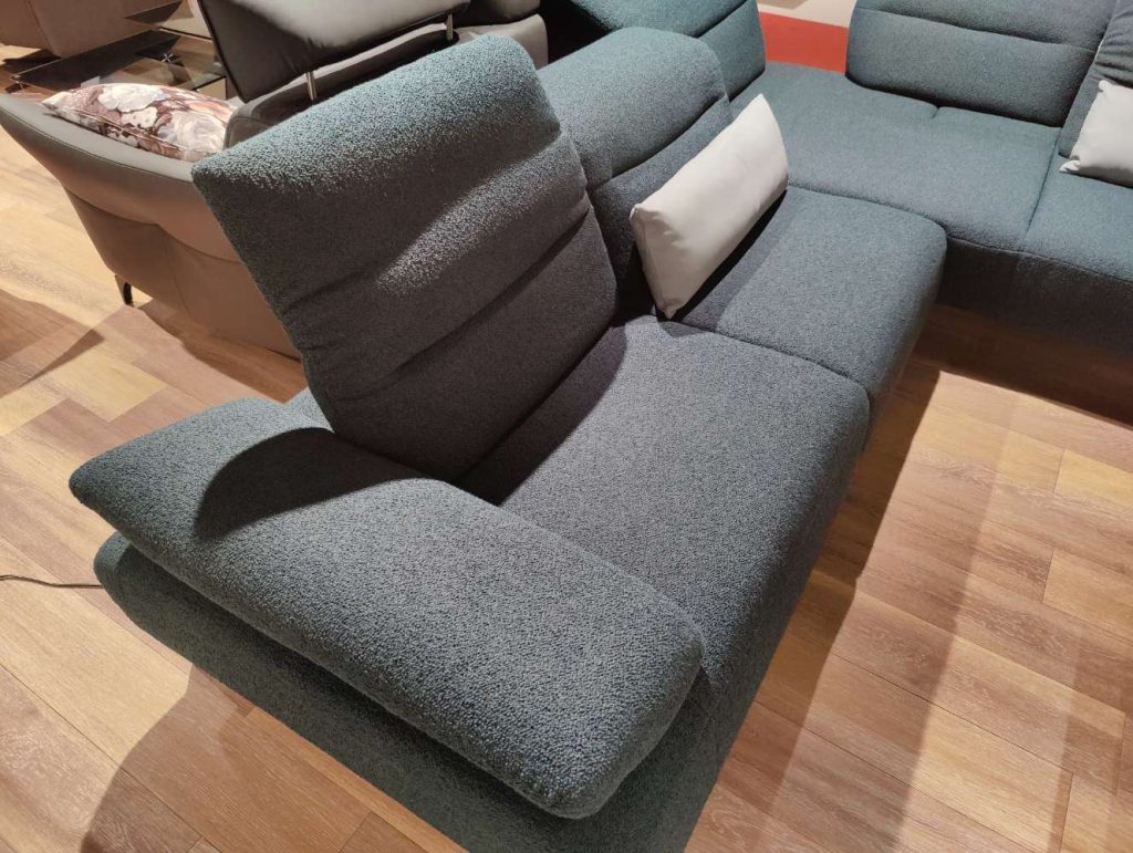 Ein besonderes Highlight dieses Qualitätsmöbels ist die elektrische Verstellung des Fußteils, die individuellen Komfort auf Knopfdruck ermöglicht. Die manuell einstellbare Sitztiefe und Kopfteilverstellung passen sich flexibel an Ihre Bedürfnisse an, während ein hochklappbares Seitenteil zusätzliche Variabilität bietet. Die schwarzen Metallfüße ergänzen das elegante Design und sorgen für Stabilität und Langlebigkeit.