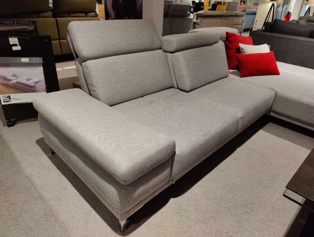 Bemerkung Das INTERLIVING Ecksofa IL4251 in edlem Platinton vereint modernes Design mit funktionalem Komfort. Der hochwertige Webstoff aus 100% Polyester sorgt für ein angenehmes Sitzgefühl und Langlebigkeit. Als Ausstellungsware bietet das Sofa eine sanfte Sitzqualität, die den Alltag entspannend gestaltet. Besonderes Highlight der IL4251 ist die vielseitige Verstellbarkeit: Kopf-, Seiten- und Armteile lassen sich individuell anpassen, um optimalen Komfort zu gewährleisten. Auch die Sitztiefe kann nach Belieben verstellt werden, was Flexibilität und persönlichen Komfort in den Vordergrund rückt. Die silber mattierten Metallfüße verleihen dem Sofa einen stabilen Stand und fügen sich harmonisch in das Gesamtbild ein. Mit einem großzügigen Schenkelmaß von ca. 300 x 225 cm findet dieses Ecksofa leicht seinen Platz in größeren Wohnräumen und bietet genügend Sitzfläche für Familie und Gäste. Das IL4251 ist mehr als nur ein Möbelstück – es ist ein Statement modernen Wohnens mit einem Auge für Detail und Komfort.