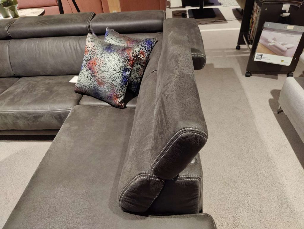 BemerkungDas Ecksofa IL 4252 in einem eleganten Anthrazit mit kontrastierenden weißen Nähten bietet eine hervorragende Kombination aus Komfort und Stil. Die Microfaser in Büffeloptik, gefertigt aus 100% Polyester, verleiht dem Sofa eine ansprechende und robuste Textur, die sowohl strapazierfähig als auch pflegeleicht ist. Als Ausstellungsstück zeichnet sich dieses Modell durch eine detailreiche Verarbeitung und nachhaltige Materialien aus.