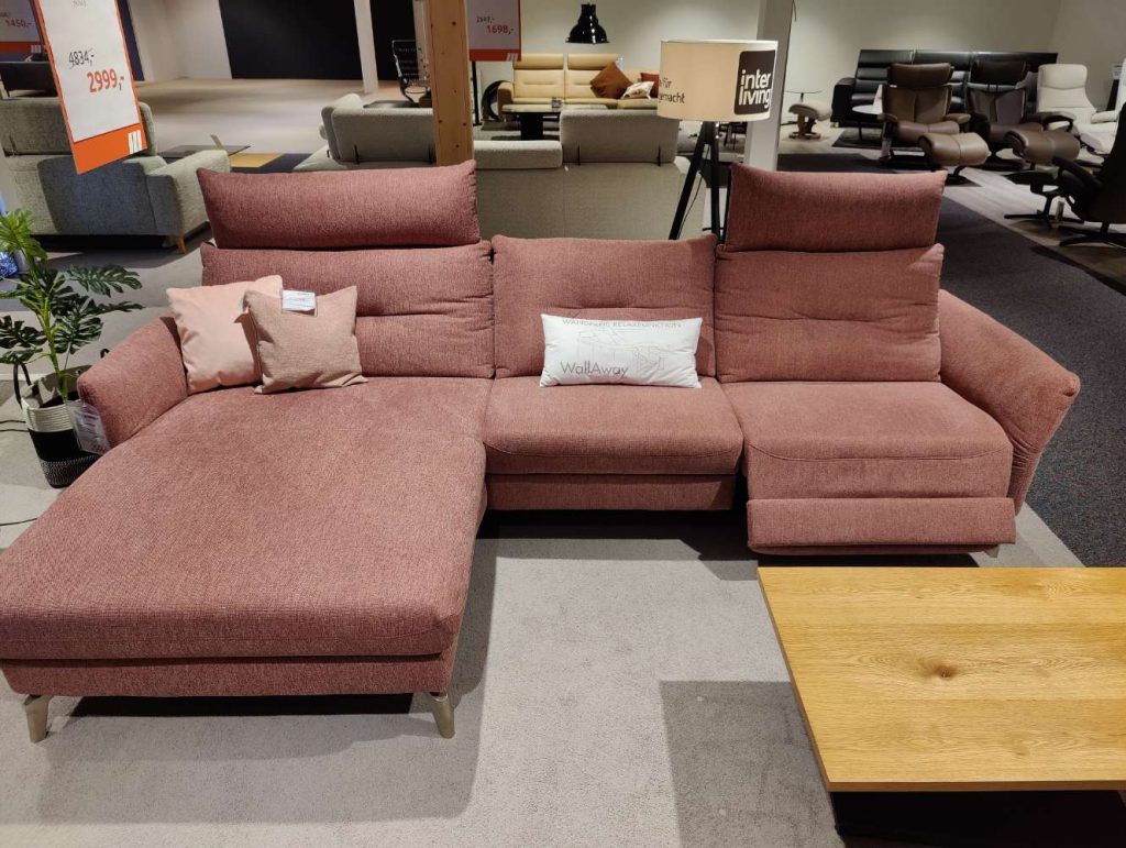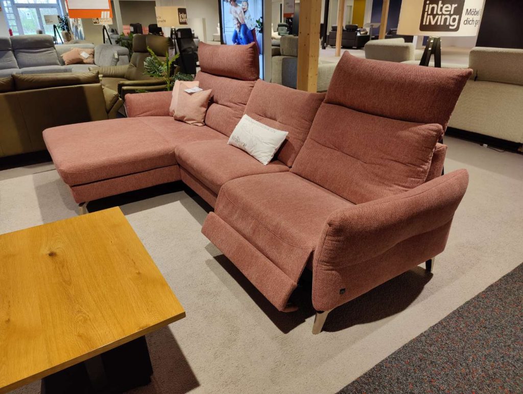 Bemerkung Das IL 4400 Ecksofa in elegantem wine ist mehr als nur ein Möbelstück; es ist eine Einladung zur Entspannung in stilvoller Umgebung. Der luxuriöse Webstoff aus 100% Polyester verleiht dem Sofa eine ansprechende Textur, während die Edelstahloptik der Metallfüße ein modernes Design akzentuiert. Die motorisierten Funktionen bieten höchsten Komfort: Genießen Sie den Sitzvorzug im Canape und die motorische Relaxfunktion, die perfekten Entspannungskomfort garantieren. Die klappbare Armlehne ermöglicht Ihnen, den Raum nach Ihren Wünschen zu gestalten. Mit Maßen von etwa 167 x 296 – 324 cm bietet dieses Ecksofa genügend Platz für Familie und Freunde. Die im Lieferumfang enthaltenen Extras – ein Hocker und ein Nackenkissen – runden das Wohlfühlerlebnis ab. INTERLIVING bietet mit dem Modell IL 4400 eine Ausstellungsware, die sowohl durch Funktionalität als auch durch ein stilvolles Design überzeugt.
