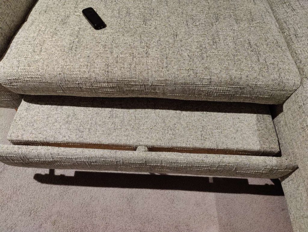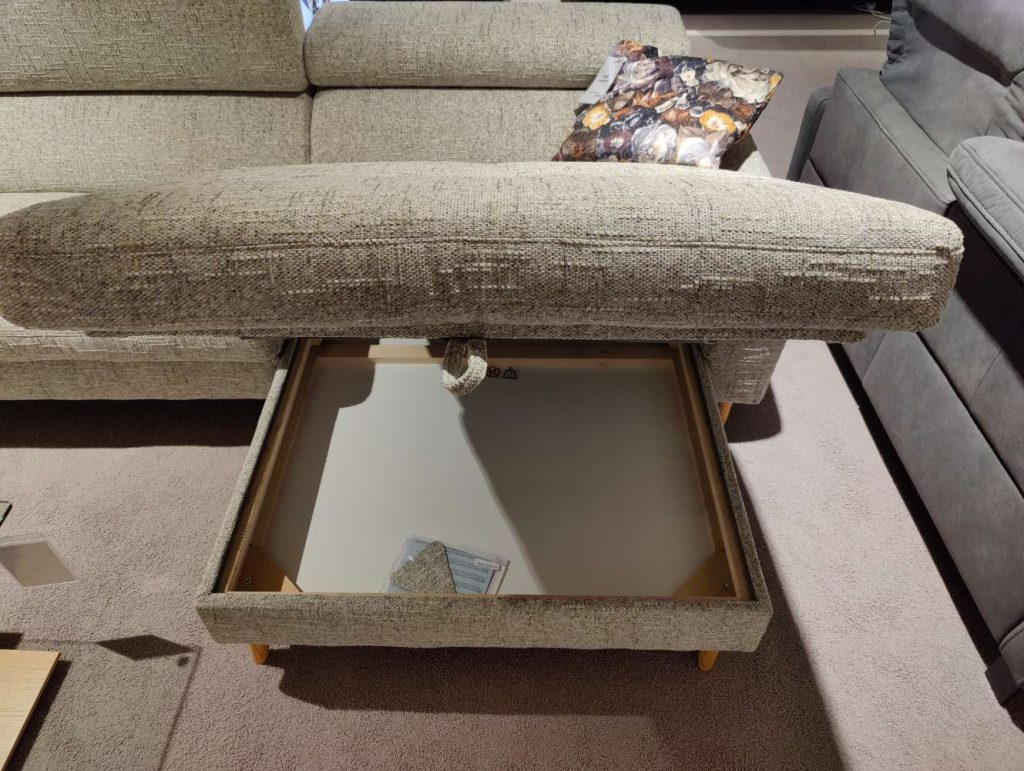 Besonders hervorzuheben ist die komfortable Sitzqualität durch den Kaltschaum, der langlebigen Sitzkomfort garantiert. Die integrierte Schlaffunktion verwandelt das Sofa im Handumdrehen in eine bequeme Schlafstätte für Gäste. Zusätzlich sorgt der Staurraumkasten für praktischen Platz, um Kissen oder Decken ordentlich zu verstauen. Die verstellbaren Kopfpolster ermöglichen eine individuell anpassbare Unterstützung, die Ihr Ruheerlebnis perfekt abrundet.