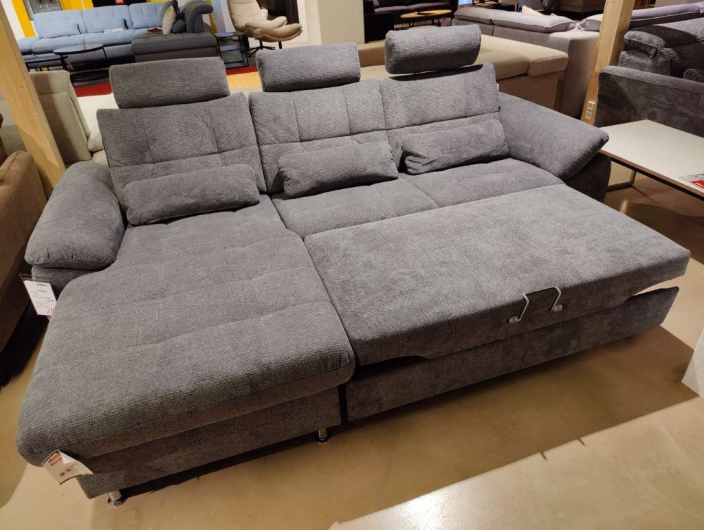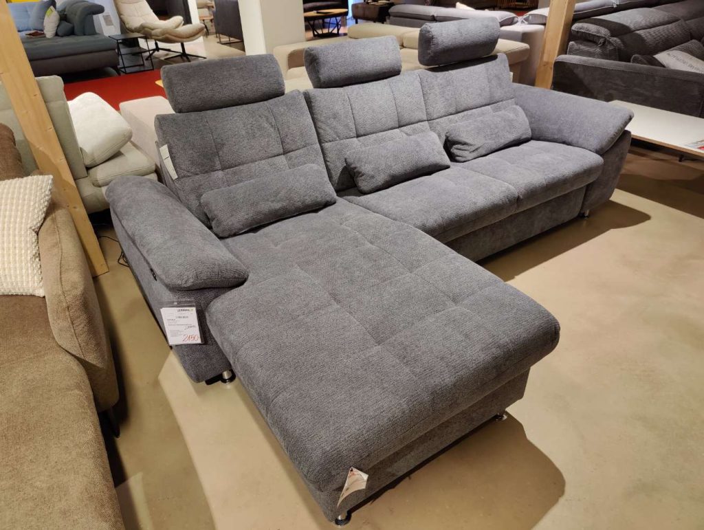 Besondere Highlights dieses Modells sind das Canape mit Motorfunktion, das sich stufenlos verstellen lässt, sowie die integrierte Schlaffunktion, die im Handumdrehen eine komfortable Schlafgelegenheit schafft. Zusätzlich sorgen die verstellbaren Armlehnen und die drei im Lieferumfang enthaltenen Kopfstützen für individuellen Sitzkomfort. Die drei Nierenkissen bieten zusätzlichen Halt und Gemütlichkeit. Abgerundet wird das elegante Erscheinungsbild durch die stilvollen Metallfüße in Chromoptik. Diese Ausstellungsausführung ist nicht nur ein stilvoller Blickfang in jedem Wohnzimmer, sondern auch ein Beispiel für höchste Funktionalität.