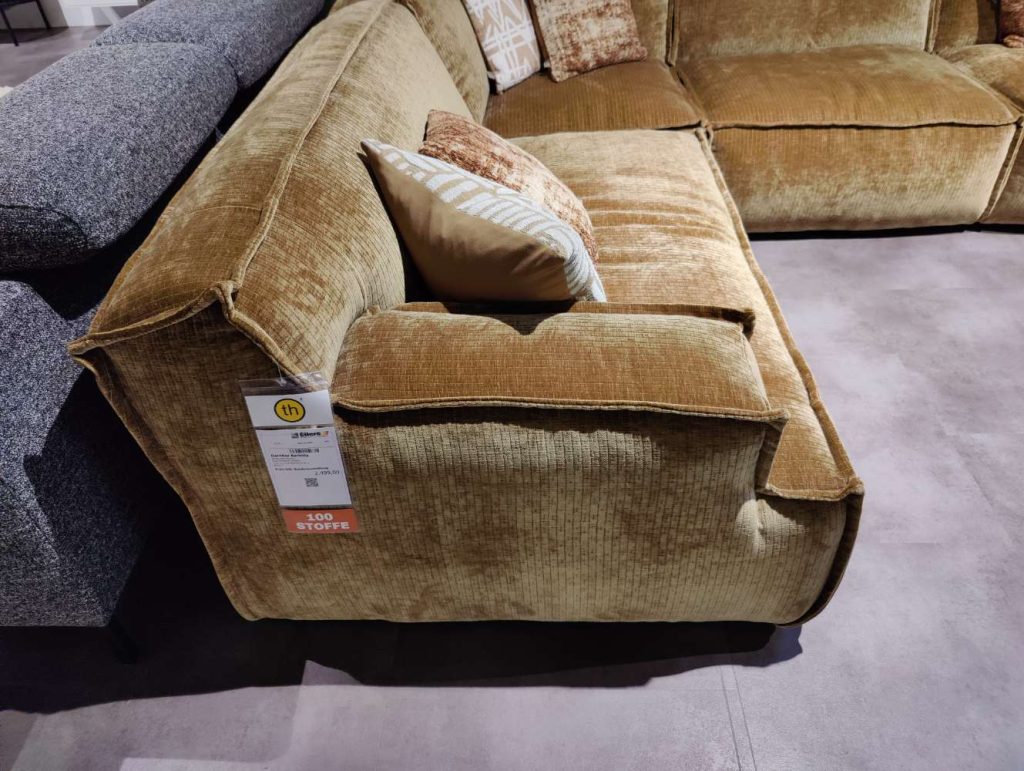 Bemerkung Das Ecksofa Barletta von Trendhopper bietet mit seiner imposanten Größe von 253 x 318 x 79 cm und einer komfortablen Sitztiefe von 68 cm ein wahres Paradies der Gemütlichkeit. In der Farbe "army" wertet es jeden Wohnraum auf und bringt eine unaufdringliche Eleganz durch die Vintage-Cord-Optik zur Geltung. Die Kombination aus einer Nosagunterfederung und einem innovativen Mix aus Kaltschaum, Federn und Silikonfasern sorgt für herausragenden Sitzkomfort und Langlebigkeit. Die breiten Armlehnen, mit einer Höhe von 59 cm und einer Breite von 30 cm, laden zum entspannten Zurücklehnen ein. Barlettas stabilen Kunststoffgleiter in schwarz verleihen dem Möbelstück eine schwebende Leichtigkeit und schützen gleichzeitig den Bodenbelag. Dieses Modell, aus 100% Polyester gefertigt, ist als Ausstellungsware erhältlich. Ob für gesellige Abende mit Freunden oder entspannte Stunden mit der Familie, das Sofa Barletta wird zum Herzstück jeder Einrichtung.