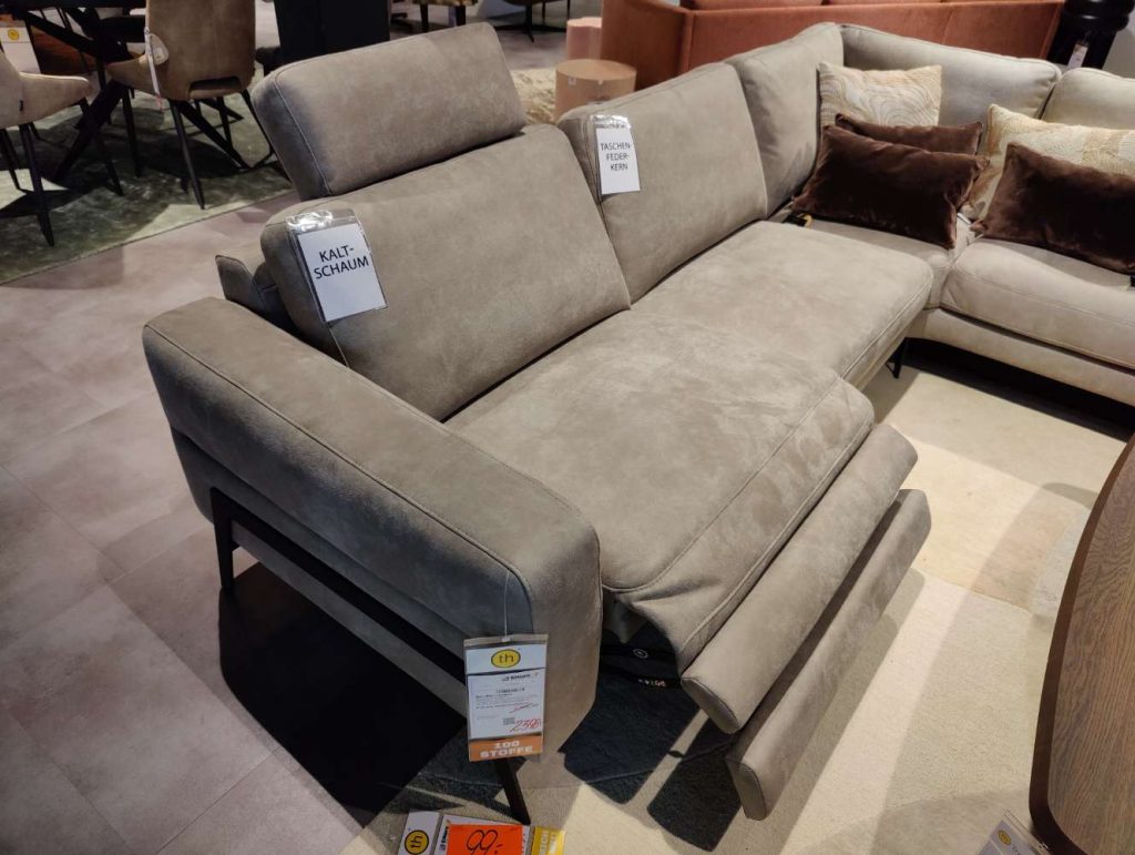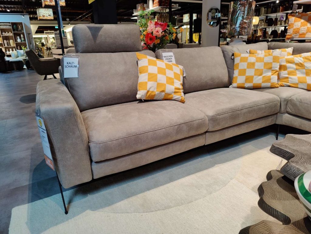 Bemerkung Das Ecksofa Londen von Trendhopper vereint stilvolles Design und hohen Komfort in einem beeindruckenden Möbelstück. Mit seiner eleganten Farbe Clay und der Oberfläche aus hochwertiger Microfaser in Lederoptik fügt es sich nahtlos in jede moderne Einrichtung ein. Die großzügigen Maße von 282 x 223 cm bieten ausreichend Platz zum Entspannen, während die fortschrittliche Nosagunterfederung in Kombination mit einem Komfort Sandwich-Kaltschaum und einem speziell ausgestatteten Sitzelement mit Taschenfederkern höchsten Sitzkomfort garantiert. Ein Highlight des Sofas ist die motorische Relaxfunktion, die per Knopfdruck aktiviert werden kann und Ihnen ermöglicht, trotz Alltagsstress völlige Entspannung zu finden. Die integrierte Kopfstütze sorgt dabei für zusätzlichen Komfort. Schwarze Designfüße runden das stilvolle Gesamtbild ab und sorgen für Stabilität. Als Austellungsware bietet dieses Modell nicht nur ausgezeichnete Funktionalität, sondern auch einen Blickfang für jeden Wohnraum. Ob zum Entspannen, Lesen oder für gemütliche Abende mit Freunden, das Ecksofa Londen passt sich Ihren Bedürfnissen perfekt an.