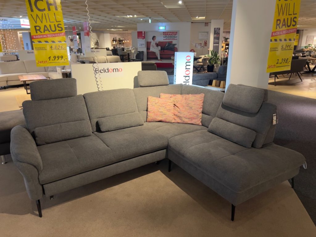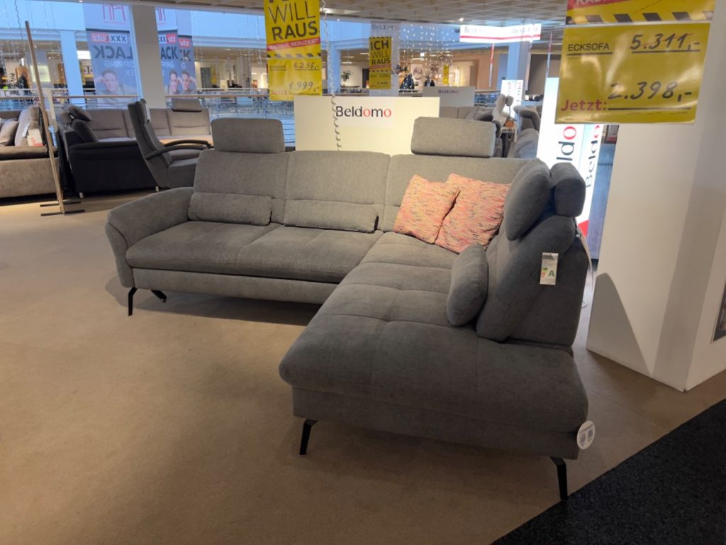 ECKSOFA INKL FUNKTIONEN WEBSTOFF GRAU