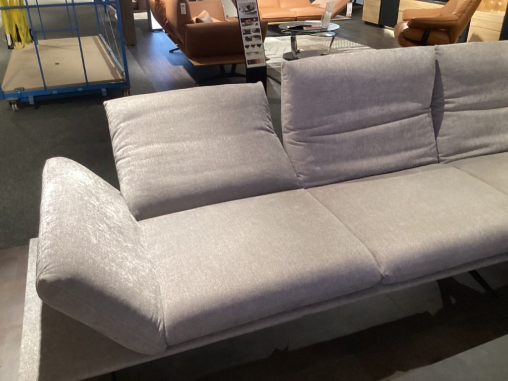 BemerkungDas KOINOR Ecksofa „Francis“ vereint zeitloses Design mit außergewöhnlicher Funktionalität und ist die ideale Wahl für jeden, der Komfort und Stil schätzt. Dieses elegante sofa in dezentem Hellgrau besticht durch seine großzügigen Dimensionen von 314 x 93 x 159 cm, was es perfekt für gemütliches Entspannen allein oder in Gesellschaft macht. Besondere Merkmale wie die bewegliche Kopfstütze und die klappbare Armlehne sorgen für individuell anpassbaren Sitzkomfort. Die stabilen Metallkufen in matt Schwarz verleihen dem Sofa einen modernen Touch und harmonieren perfekt mit dem zeitgemäßen Design. Als Ausstellungsware bietet Francis nicht nur optische Highlights, sondern auch Qualität, die man spürt. Ob im Wohnzimmer, Büro oder einem anderen Raum, dieses Sofa ist sowohl ein Hingucker als auch eine bequeme Wohlfühloase.