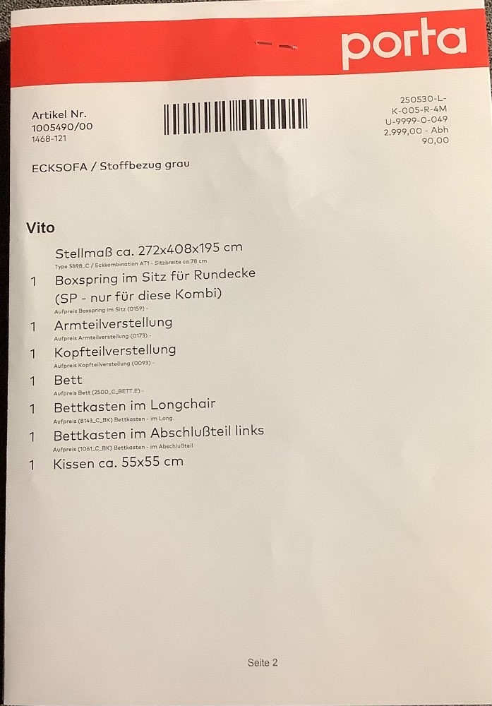 Lieferung auf Anfrage (max. 100 km, per Spedition)
