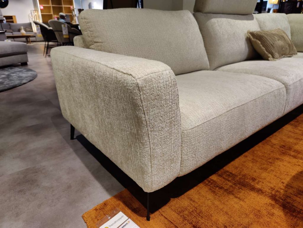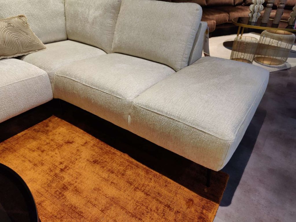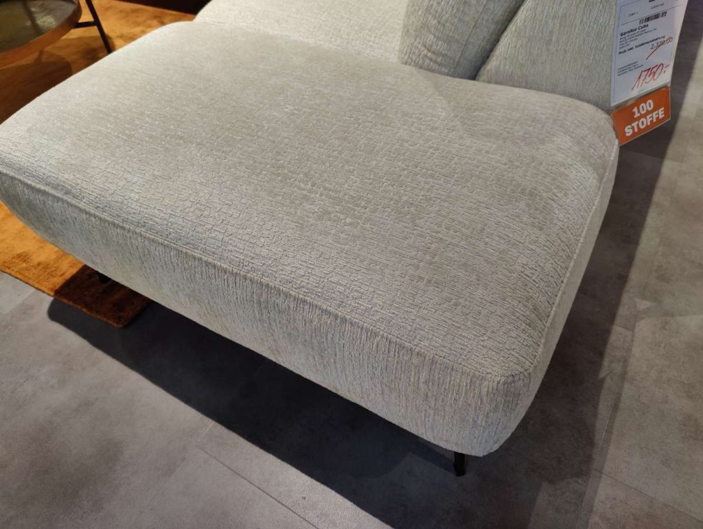 BemerkungDas Cuba Ecksofa von Trendhopper verkörpert stilvolle Eleganz und funktionalen Komfort in einem beeindruckenden Design. In der sanften Farbe Cream gehalten, fügt sich das Sofa harmonisch in verschiedene Wohnwelten ein und schafft eine einladende Atmosphäre im Wohnzimmer. Der hochwertige Stoff aus 100% Polyester sorgt nicht nur für ein angenehmes Sitzgefühl, sondern zeichnet sich auch durch seine Strapazierfähigkeit und Langlebigkeit aus. Mit einer großzügigen Größe von 300 x 223 cm bietet das Sofa ausreichend Platz für gesellige Runden oder entspannte Abende mit der Familie. Die im Lieferumfang enthaltene Kopfstütze erhöht den Komfort noch weiter und unterstützt eine ergonomische Sitzhaltung. Die schwarzen Füße setzen einen modernen Kontrast zur hellen Polsterung und verleihen dem Möbelstück eine zeitgemäße Note. Als Ausstellungsware präsentiert sich das Cuba Ecksofa nicht nur als eine elegante Sitzgelegenheit, sondern auch als Ausdruck eines urbanen Lifestyles.