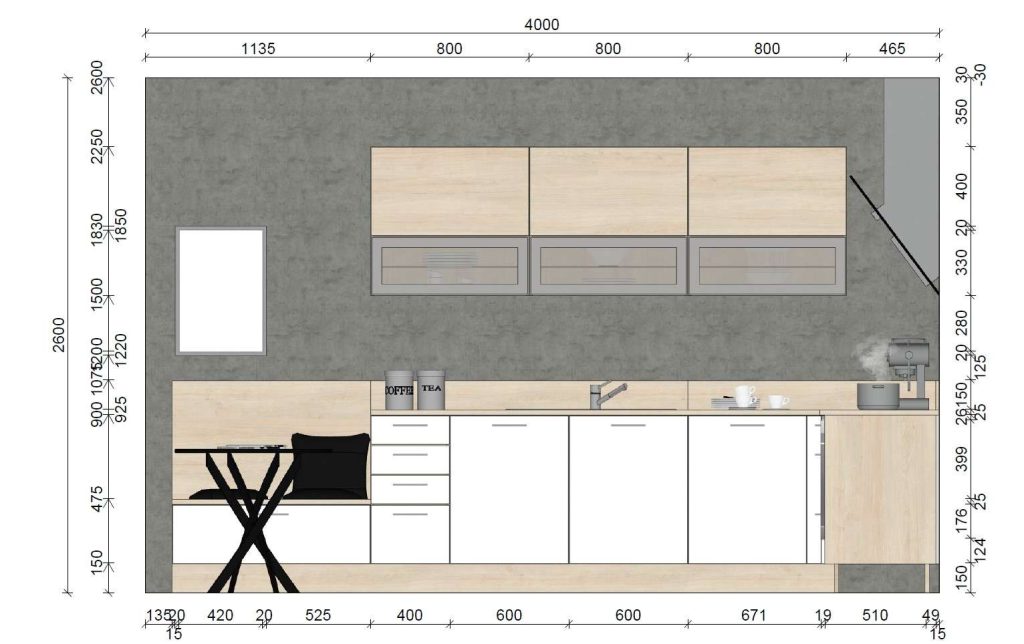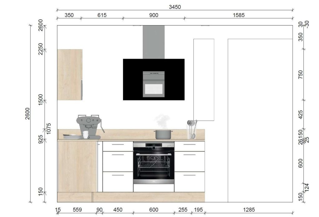 inkl. Geräte, Spüle, Armatur, elektrischer Hängeschränke und Beleuchtung