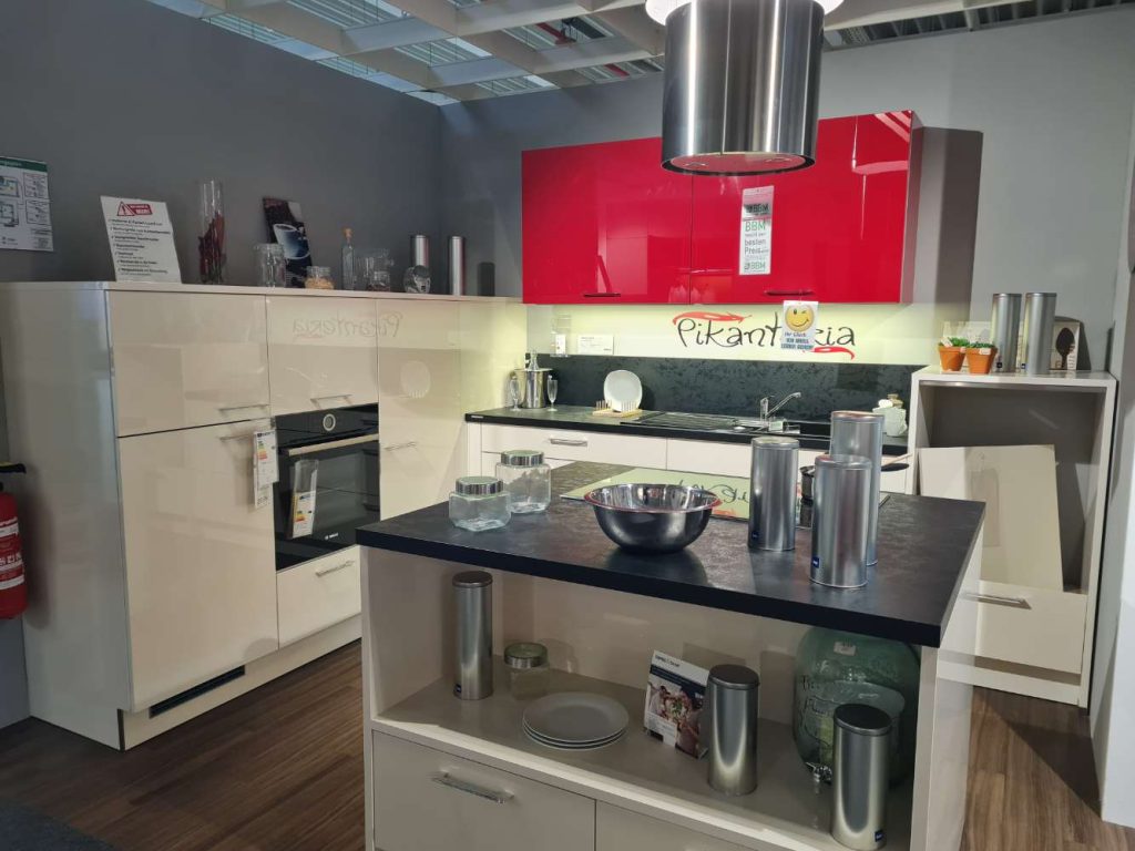 BemerkungDie "Trend Lack" Ausstellungsküche von NOLTE KÜCHE kombiniert stilvolle Eleganz mit praktischer Funktionalität. Diese moderne Küche mit Insel besticht durch ihre glänzende Magnolia-Oberfläche. Die angenehme Arbeitsflächenhöhe von 94 cm sorgt für Komfort bei allen Küchenarbeiten. Diese Ausstellungsküche vereint moderne Ästhetik mit der bewährten Qualität von NOLTE KÜCHE und wird zum Herzstück Ihres Zuhauses.