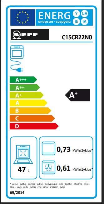 Energieklasse: A+ (Spektrum: Von A+++ bis D) Energylabel A+ Spektrum: Von A+++ bis D