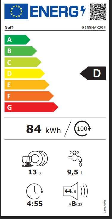 Energieklasse: B (Spektrum: Von A+++ bis D) Energylabel B Spektrum: Von A+++ bis D