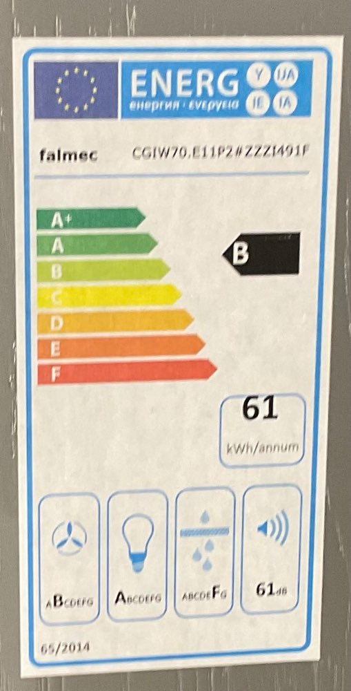 Energieklasse: B (Spektrum: Von A bis G) Energylabel B Spektrum: Von A bis G