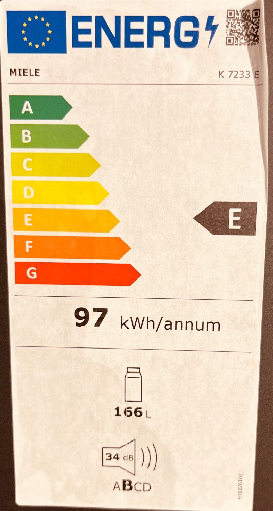 Energieklasse: E (Spektrum: Von A bis G)