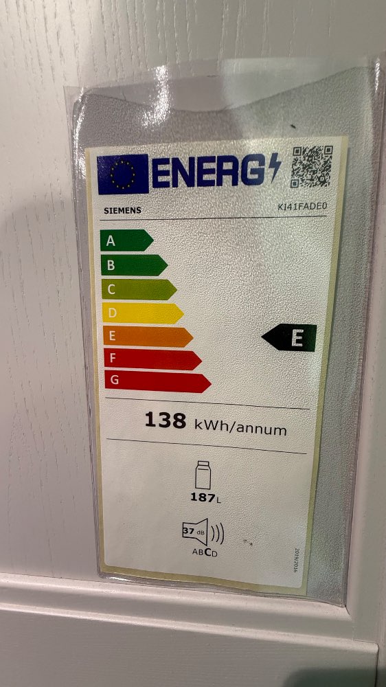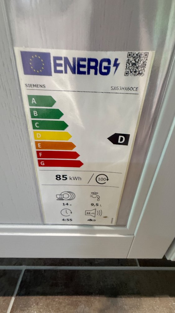 Energieklasse: E (Spektrum: Von A+++ bis D) Energylabel E Spektrum: Von A+++ bis D