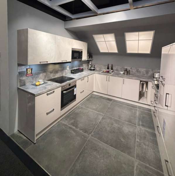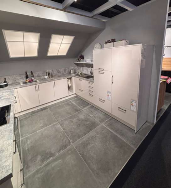 Bemerkung Die Fino Gloss Küche in Sandgrau ist ein wahrer Klassiker aus dem Hause SCHÜLLER KÜCHEN, die perfekt Form und Funktion kombiniert. Als Austellungsware präsentiert sie sich makellos und glänzend, ihre hochwertige Verarbeitung zeugt von zeitlosem Design. Die L- bzw. U-Form ermöglicht eine effiziente Raumnutzung und sorgt für ein harmonisches Zusammenspiel zwischen den verschiedenen Küchenbereichen. Die sandgraue Oberfläche verleiht der Küche eine warme, einladende Atmosphäre, die durch elegante Linien und ein dezentes Farbspiel ergänzt wird. Diese Küche ist nicht nur ein optisches Highlight, sondern auch praktisch durchdacht und optimal auf die Bedürfnisse des Alltags abgestimmt. Sie bietet Ihnen genug Platz für all Ihre Küchenutensilien und hilft Ihnen dabei, den Raum perfekt zu organisieren und Ihre Kochleidenschaft voll auszuleben. Eine ideale Wahl für alle, die Wert auf Qualität, Ästhetik und Funktionalität legen.