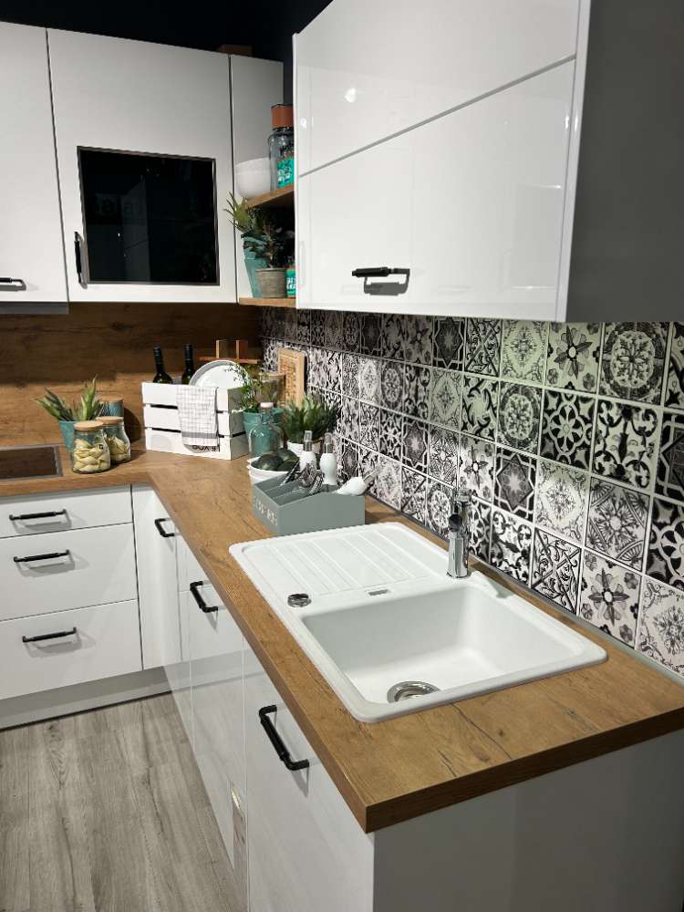 Weiß Glanz mit Holz Optik