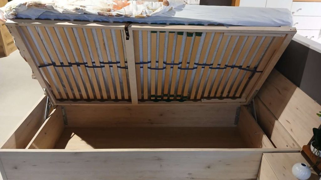 Bemerkung Die Ausstellungsware in der Farbe San Remo präsentiert sich als stilvolles Highlight aus hochwertigem Holz und beeindruckt mit ihren großzügigen Maßen von 100x200cm. Dieses Möbelstück verbindet Eleganz mit Funktionalität und wird durch den integrierten Springaufbeschlag optimal ergänzt. Der warme Holzton verleiht jedem Raum eine natürliche und einladende Atmosphäre, während die solide Verarbeitung für Langlebigkeit sorgt. Als Ausstellungsstück bietet es zudem eine hervorragende Möglichkeit, ein echtes Unikat mit charakteristischer Maserung und individuellen Holznuancen zu erwerben. Ob als zentraler Blickfang im Wohnraum oder als praktisches Element im Schlafzimmer – die Kombination aus Design und Funktion macht diese Ware zu einer wertvollen Ergänzung in jedem Zuhause.